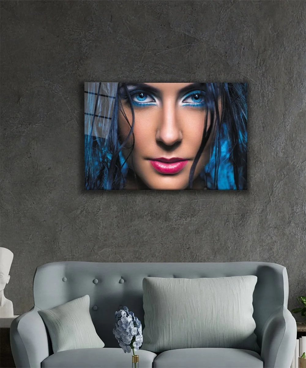Women Blue Eyes and Hair Glass Painting