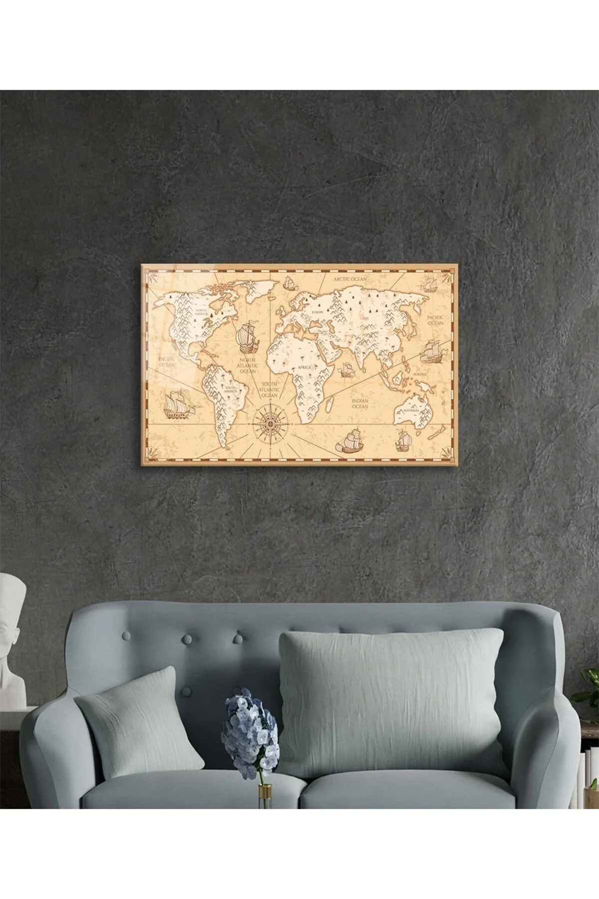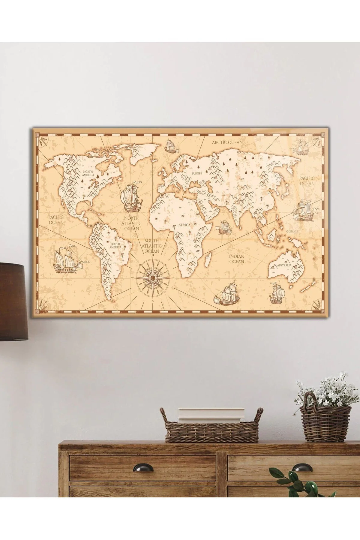 Historical World Map Glass Painting, Home And Office Wall Decoration,
