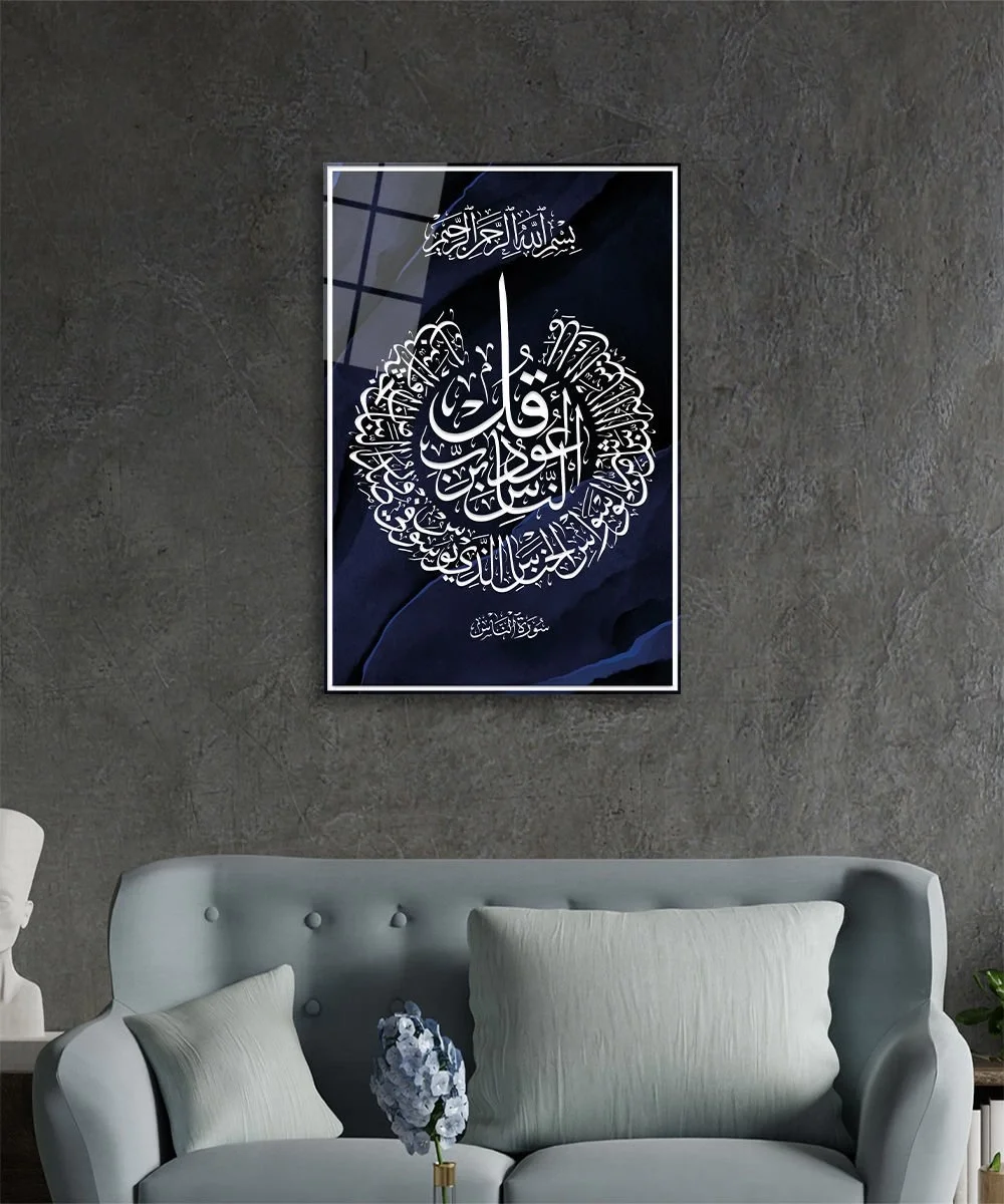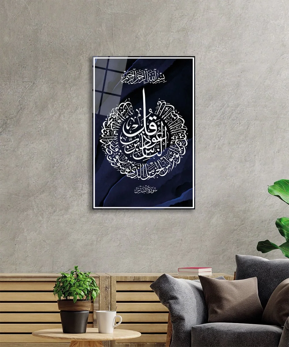 TEKNOO- Surah An-Nas Religious Islamic Dark Blue Glass Painting