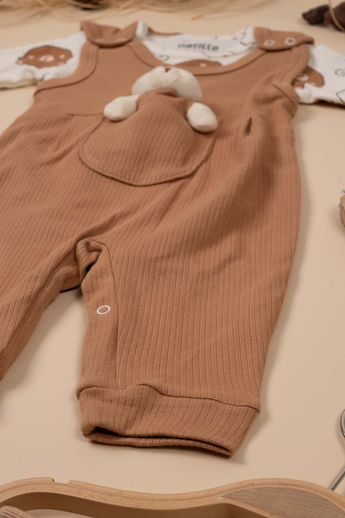 Stylish Baby Jumpsuit with Teddy Bear-Brown