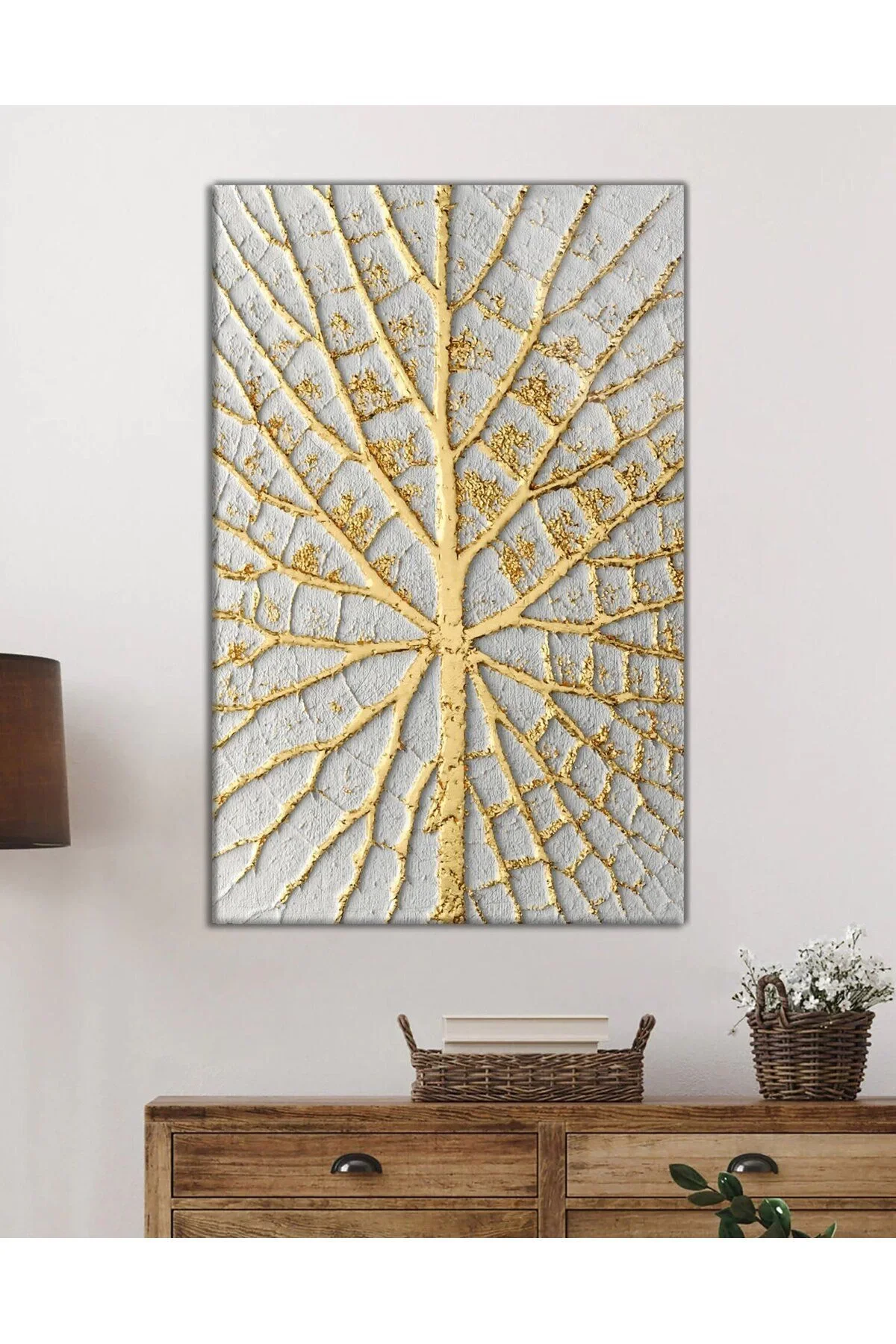 Abstract White Gold Tree Glass Painting, Home And Office Wall Decoration,