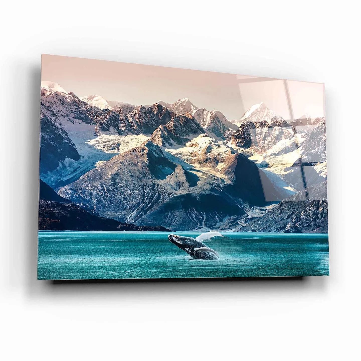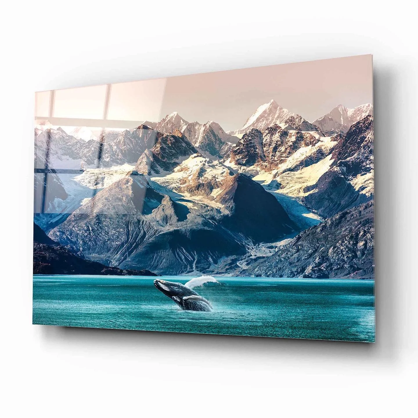 Dolphin Swimming in Snowy Mountains Ocean View Artistic Glass Painting
