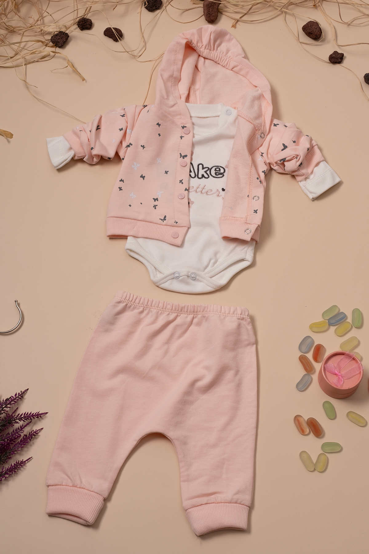 Baby Girl Snap Fastener Butterfly Printed Set 0-3 3-6 6-9 Months