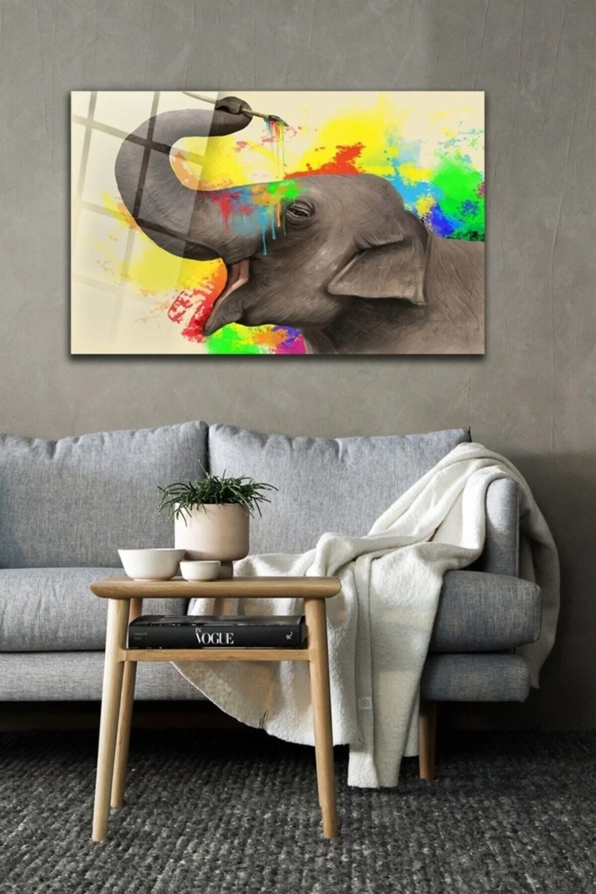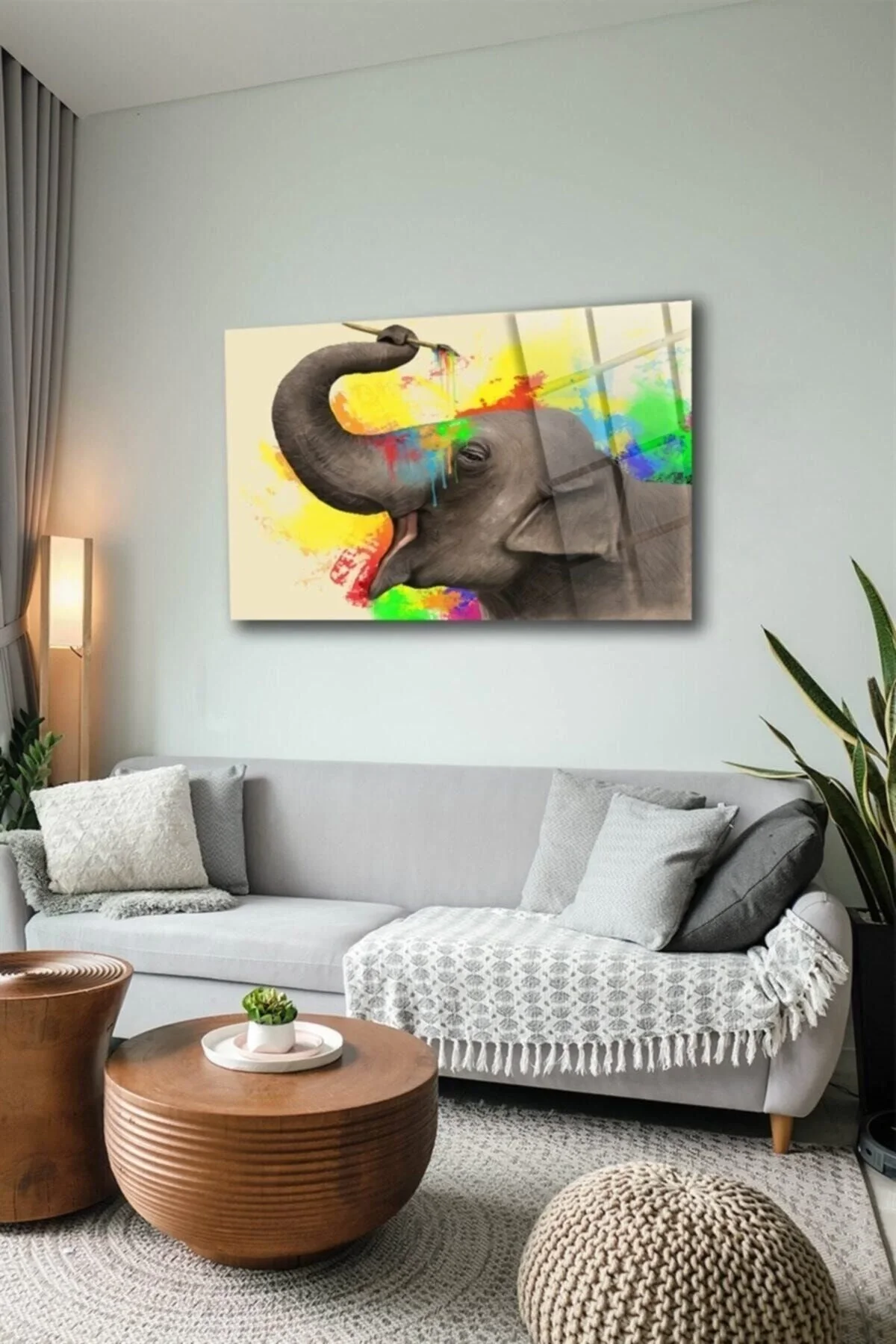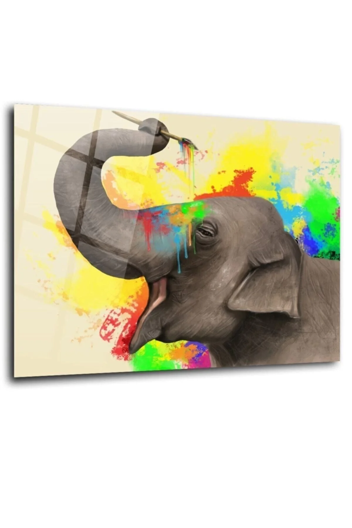 Painter Elephant Glass Painting Wall Decoration, Home Decoration, Wall Painting, Home Gift We are working to increase our diversity and offer you more options with our painting models that are renewed every day. ; Our products are produced in our own factory and made with the highest level printing machines; Our products are produced on first class 4mm tempered glass (10 times more durable than normal glass) and edge-polished glass; We have hassle-free and unconditional return processes. ; It is printed with state-of-the-art UV machines with high resolution FHD quality. ; You can easily hang our paintings, which are extremely easy to assemble, on your wall with the special steel hanging bracket attached to the back. ; Our products are printed on the back surface of the glass, allowing easy cleaning of the front surface. ; YOU CAN CHOOSE IT FOR HOME GIFT, OFFICE GIFT, AND FOR YOUR OWN USE. OUR PRODUCTS ARE SHIPPED IN A BOX. The packaging is reliable and any breakage that may occur during shipping, for whatever reason, is under our company's warranty. ; You can contact us for your special printing requests. ;