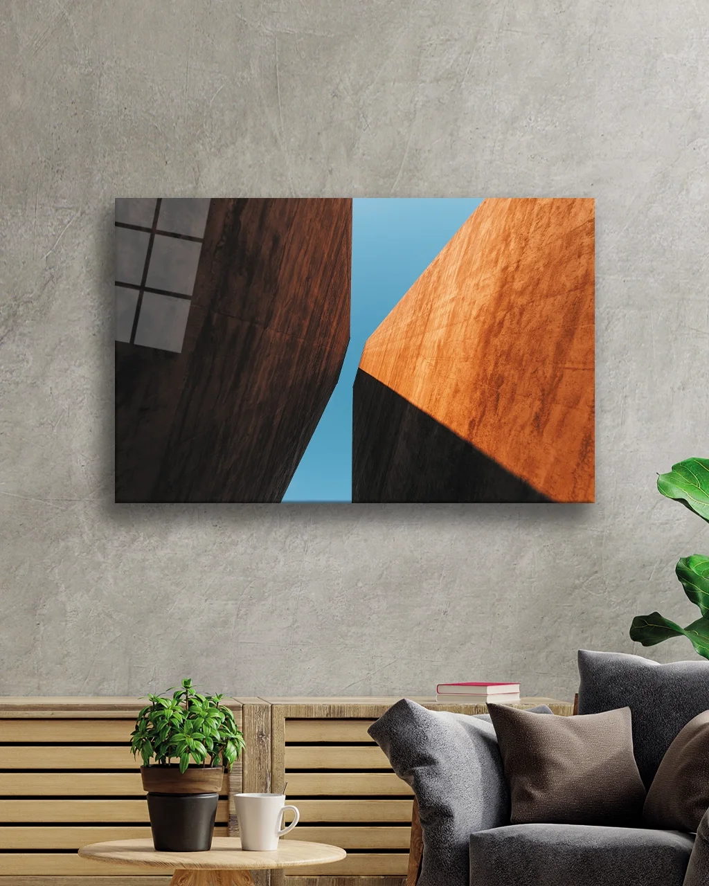 TEKNOO- Brown Blue Geometric Glass Painting Brown Blue