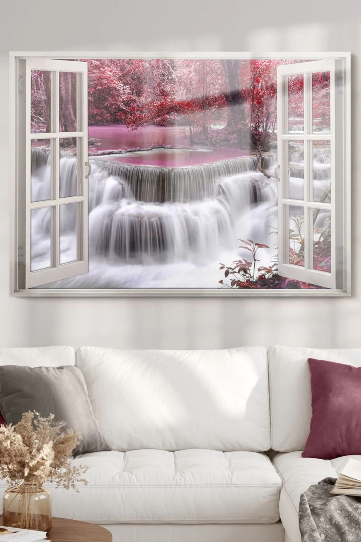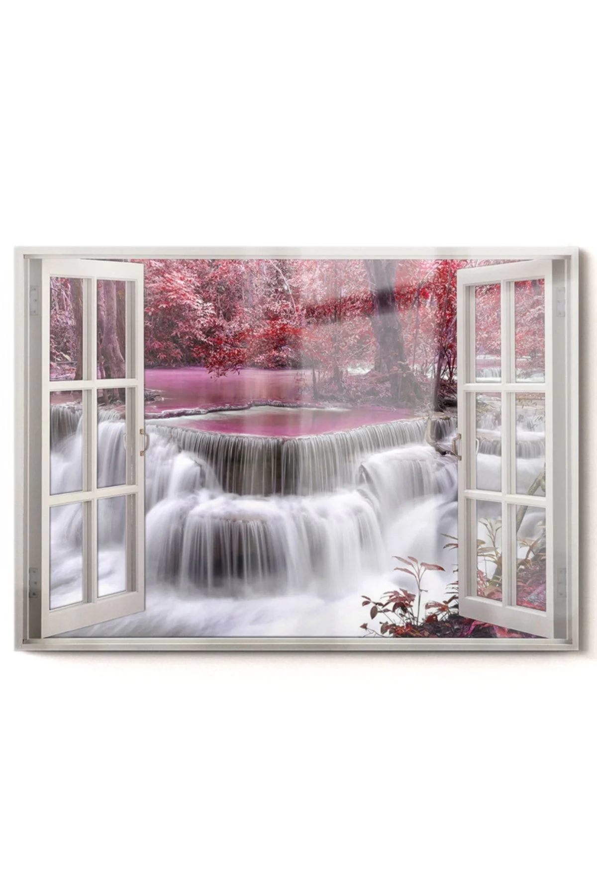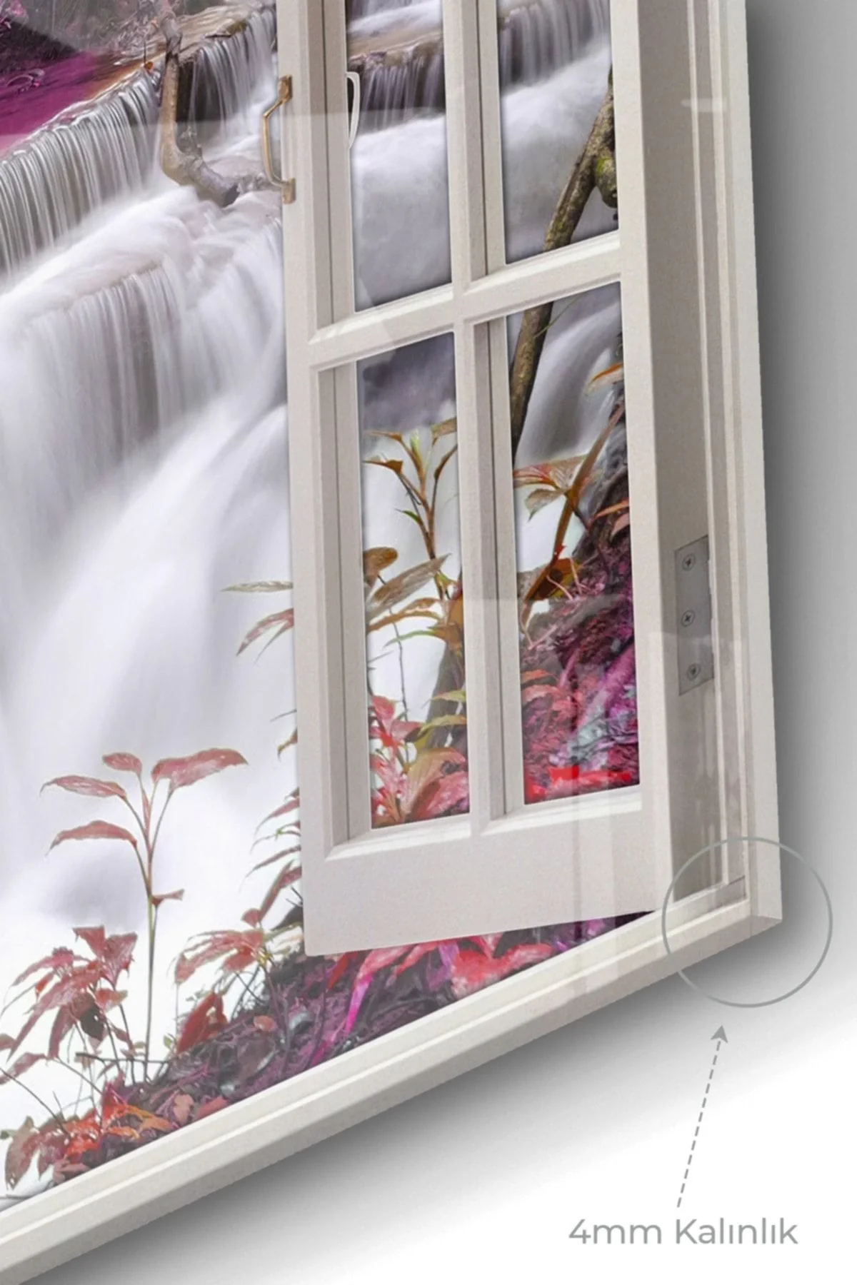 Window Waterfall And Pink Trees | Nature Themed Glass Painting | 50x70cm