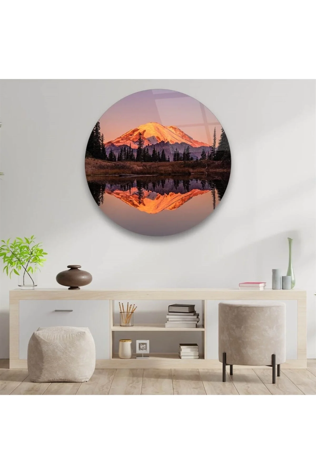 TEKNOO- Lake and Mountain View Round Glass Painting