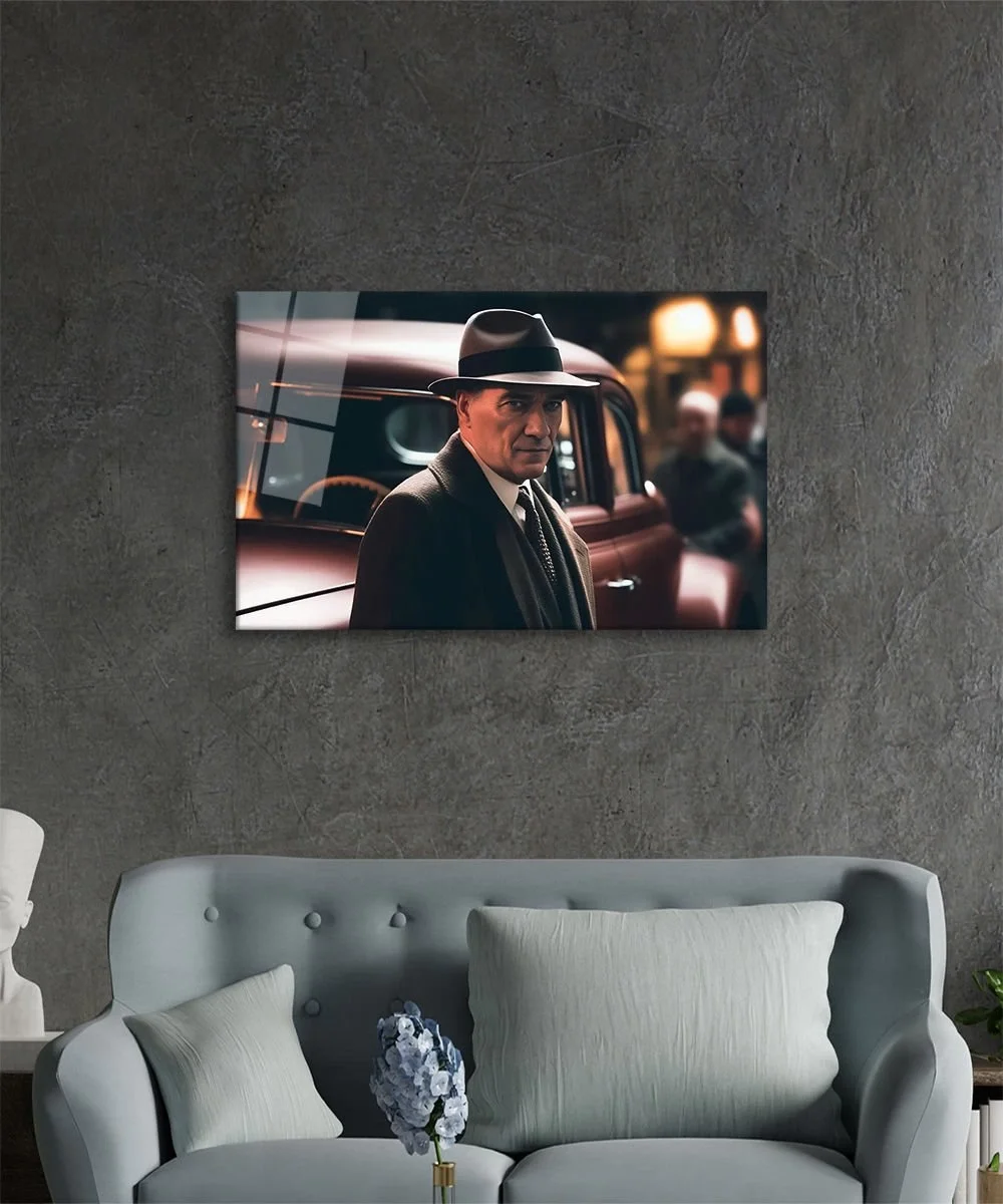 TEKNOO- Artificial Intelligence Ataturk Portrait Glass Painting Home and Office Wall Decoration