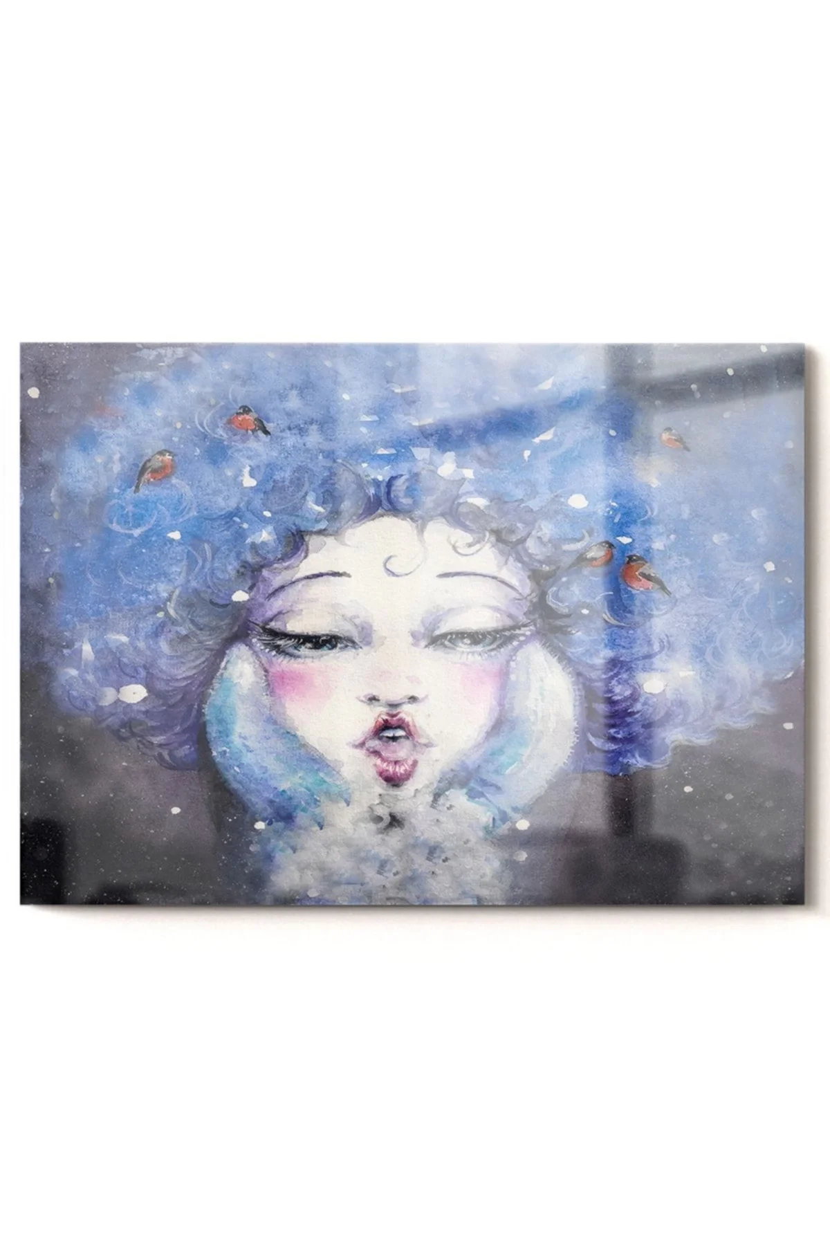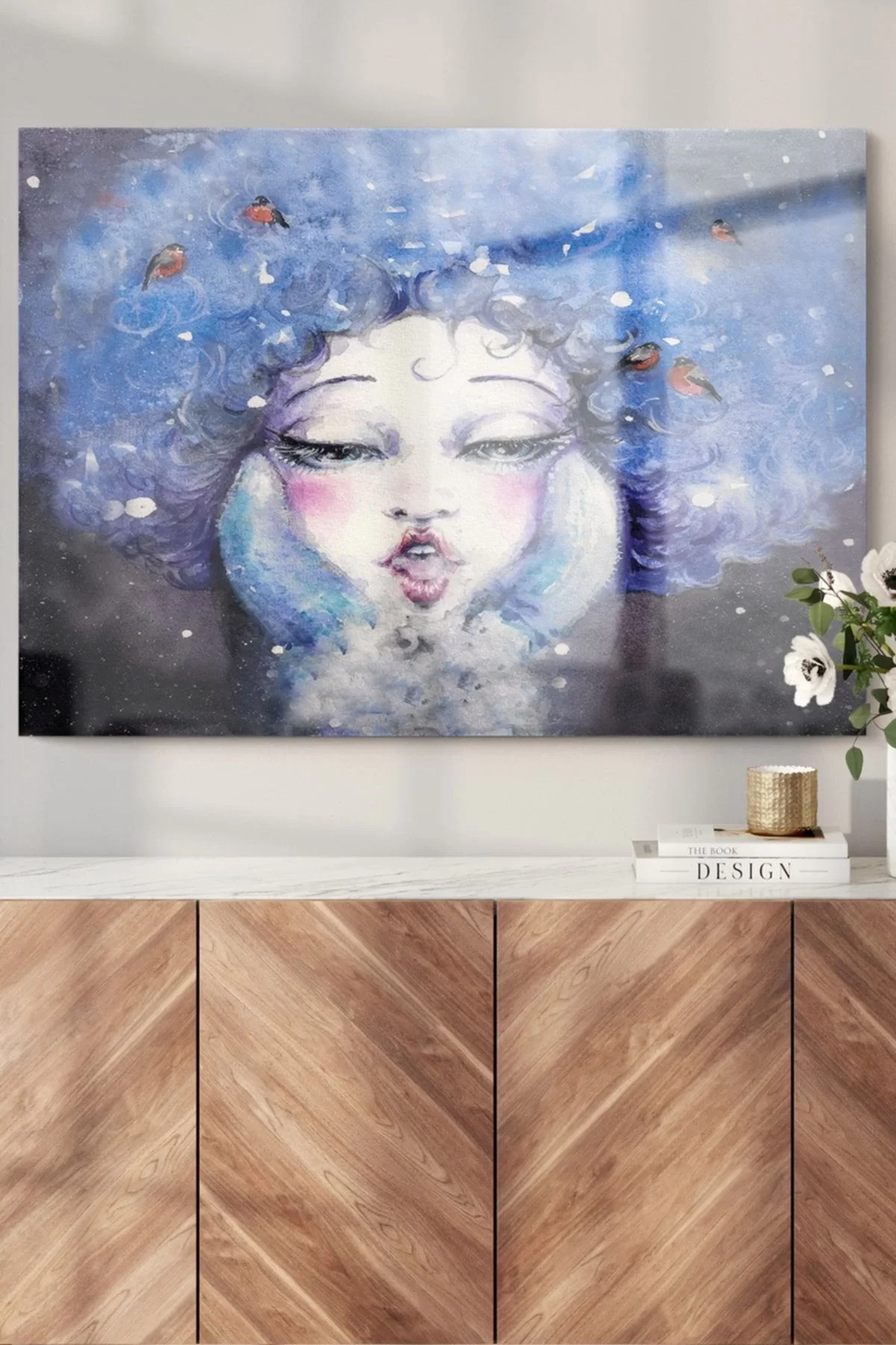 Blue Haired Girl Drawing | Art Themed Glass Painting | 50x70cm