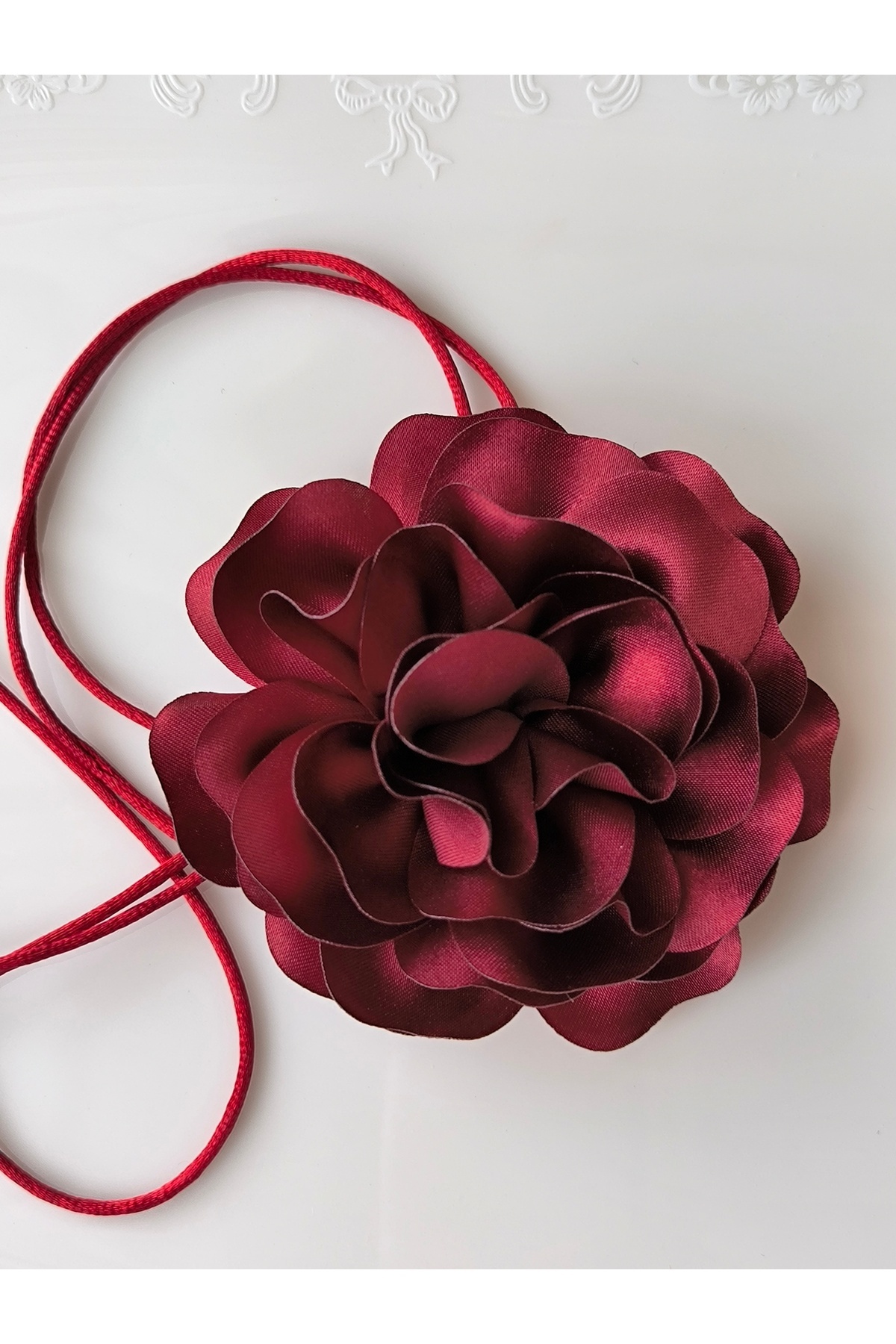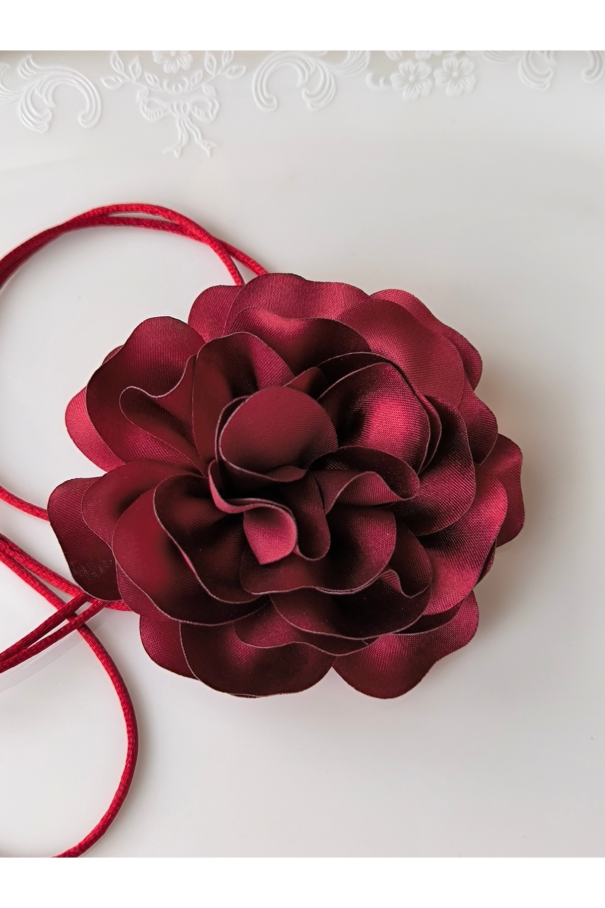Satin rose necklace; The necklace is laced and can be adjusted as desired; The satin thread used does not harm the skin; To add elegance to your clothes;