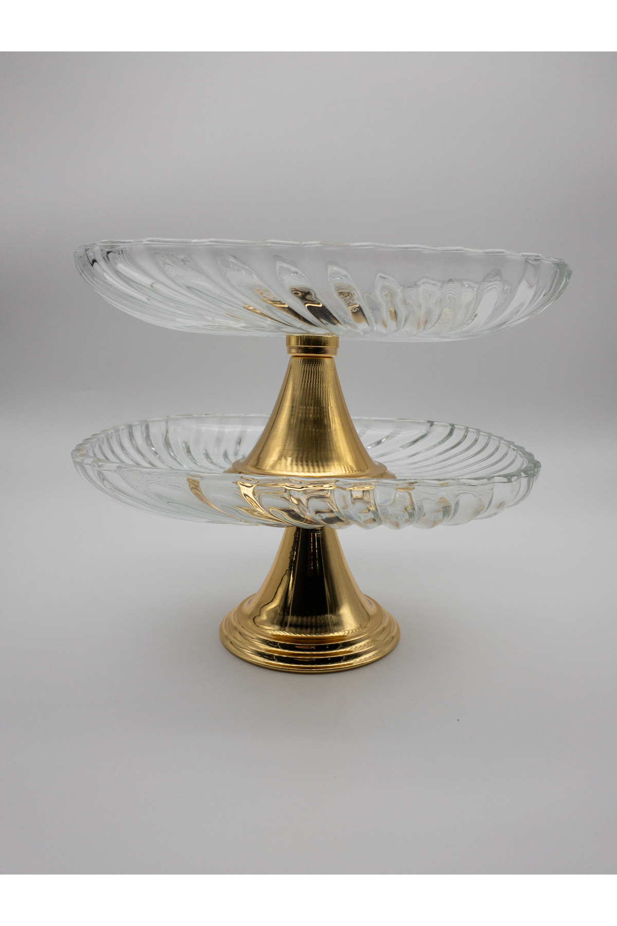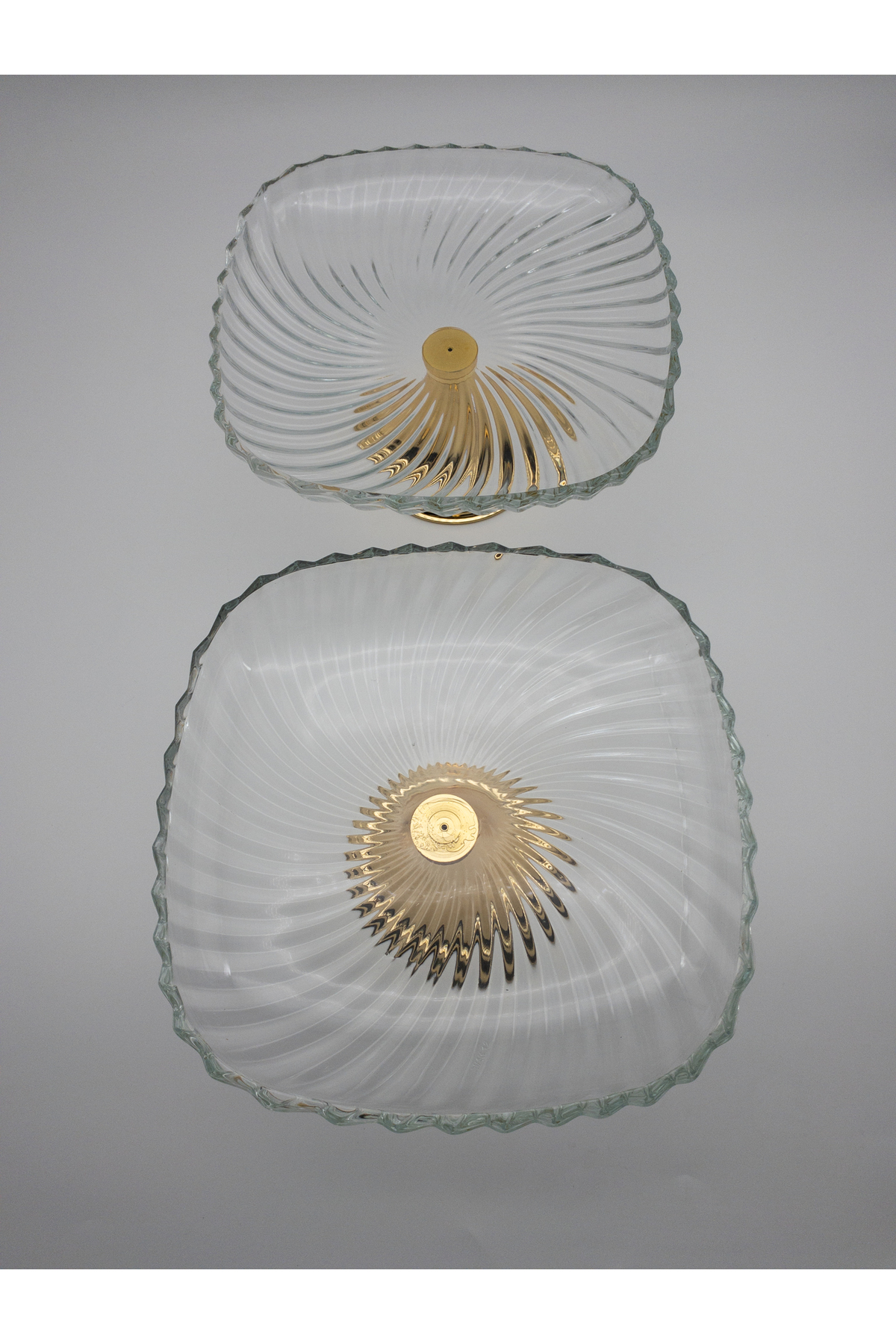 2-Piece Gold Footed Square Glass Serving Bowl, Wrap, Stuffing, Salad, Fruit and Cake Stand, Dowry Holder