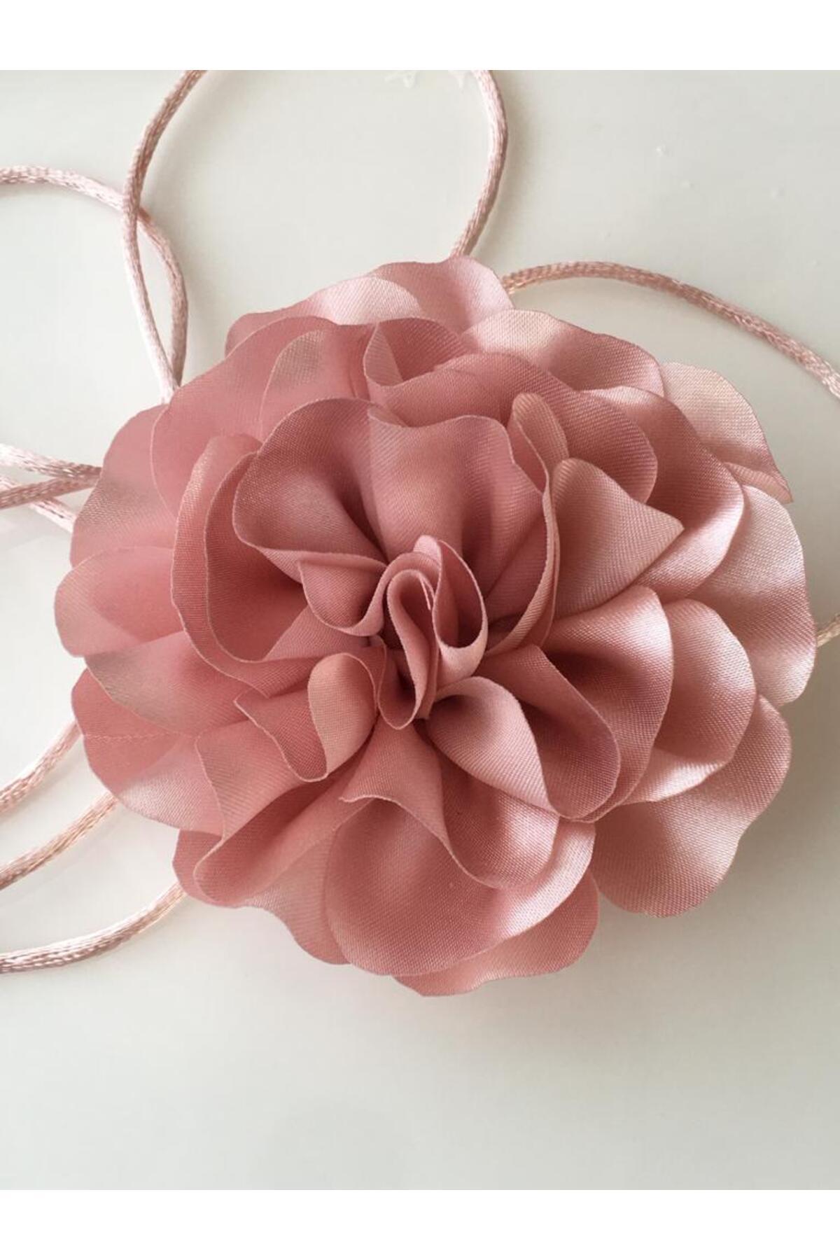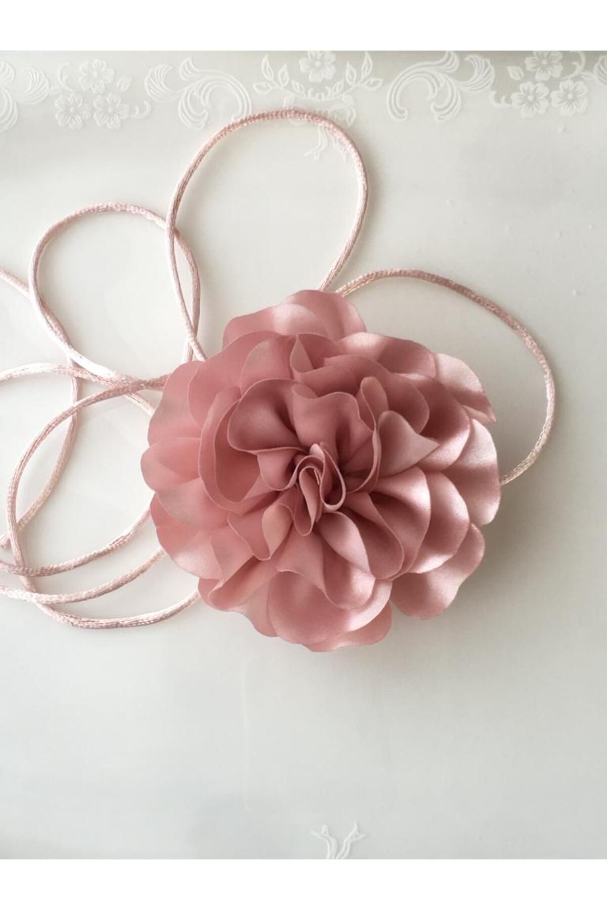 Satin Rose Necklace; The necklace is laced and can be adjusted as desired; The satin thread used does not harm the skin; To add elegance to your clothes;