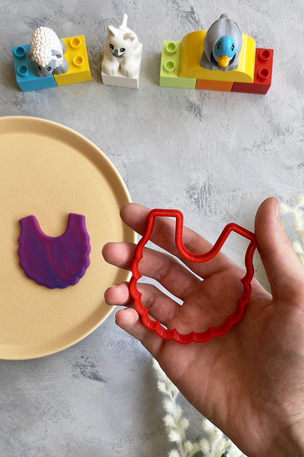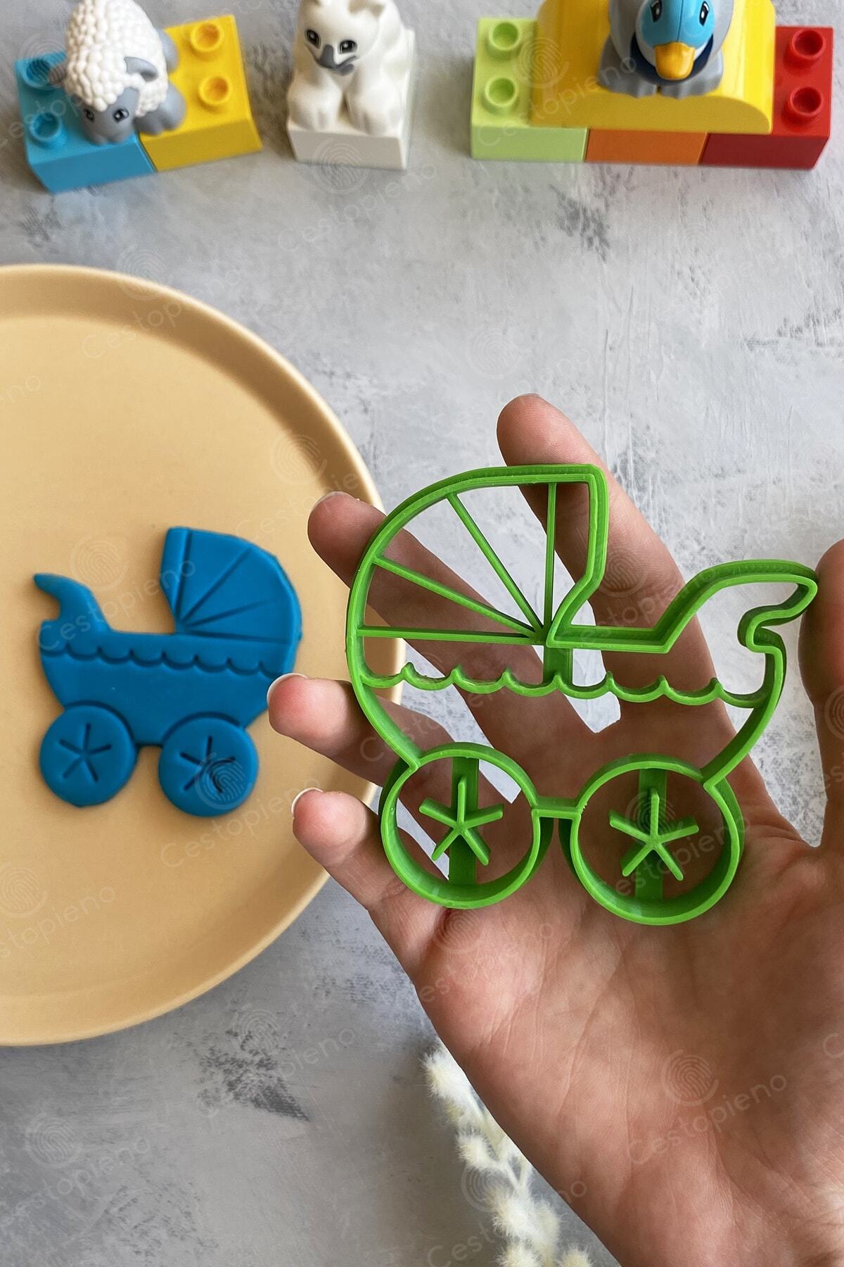 Bodysuit, Orange Color, 8x9 cm in size. Apron, Red Color, 7x7 cm in size. Crib, Gray Color, 6x8 cm in size. Overalls, Yellow Color, 8x9 cm in size. Feeding Bottle, Green Color, 4x8 cm in size. Baby Stroller, Green color, 8x8 cm in size. It should not be exposed to temperatures above 50 degrees. It should not be washed in the machine. Wash by hand. It is produced with Bioplastic raw material, which can be dissolved in nature in a short time. Suitable for use with Cookie Dough, Sugar Dough, Play Dough and Ceramic Dough.