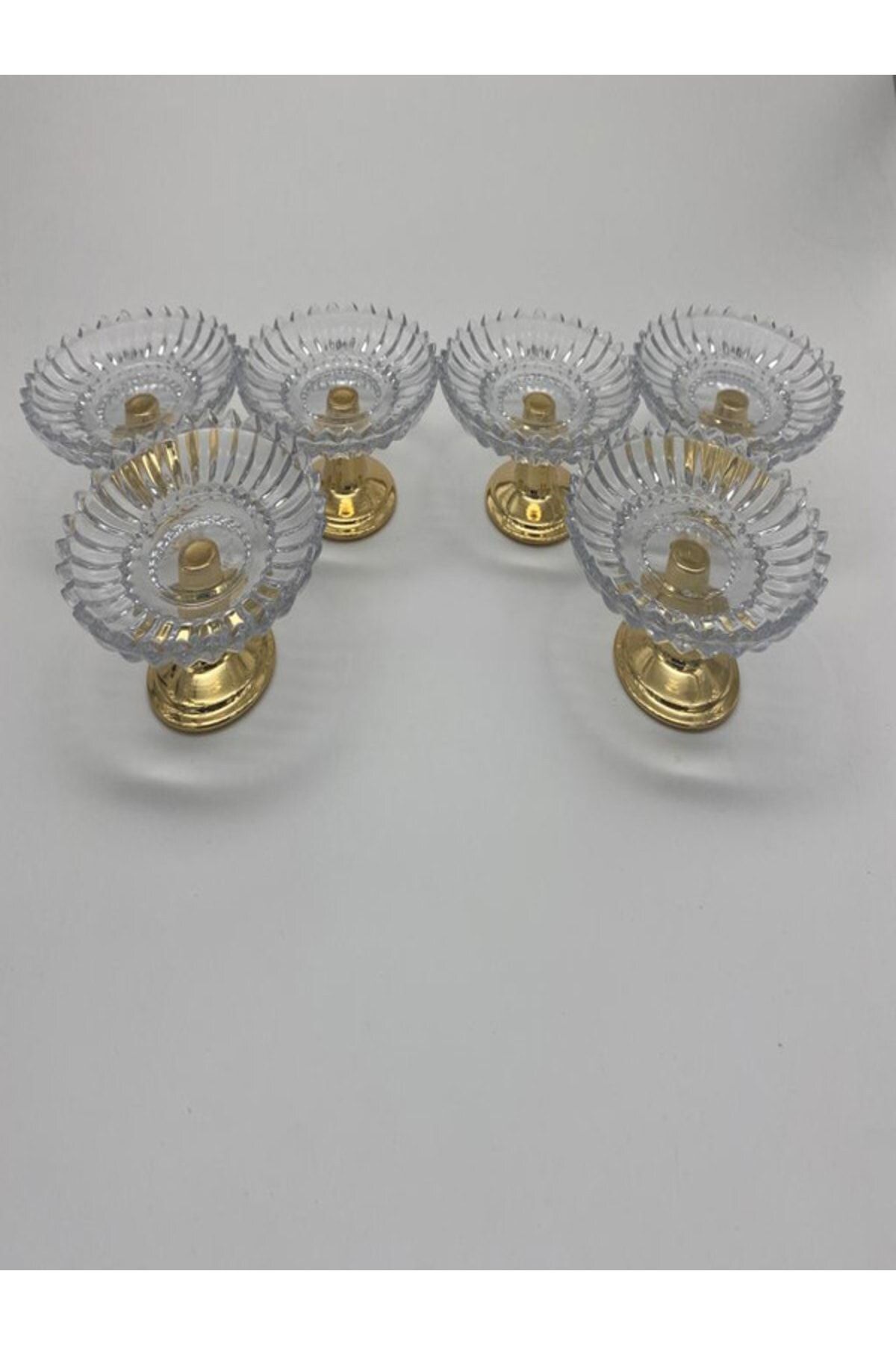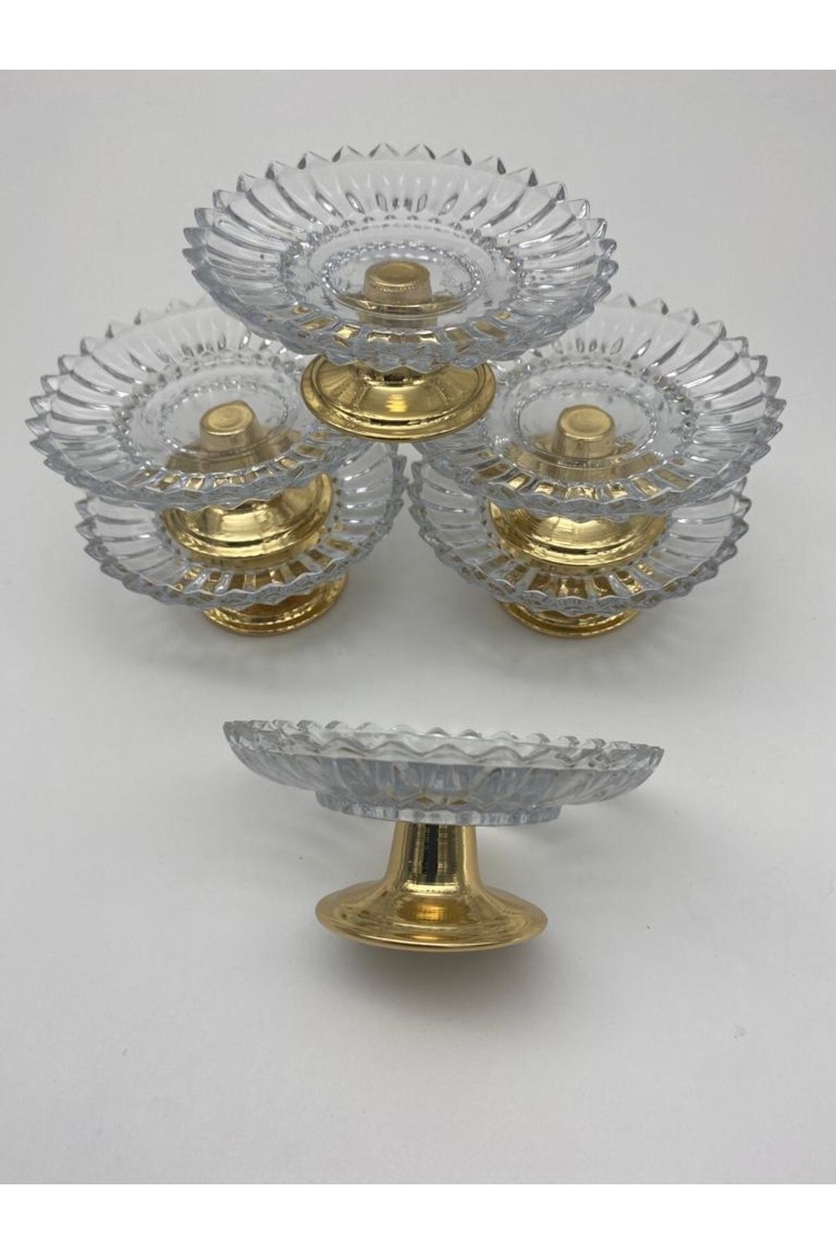 6-Piece Mini Gold Metal Leg Glass Turkish Delight Bowl, Coffee, Cookie, Cake and Pastry Presentation Bowl, Sugar Bowl