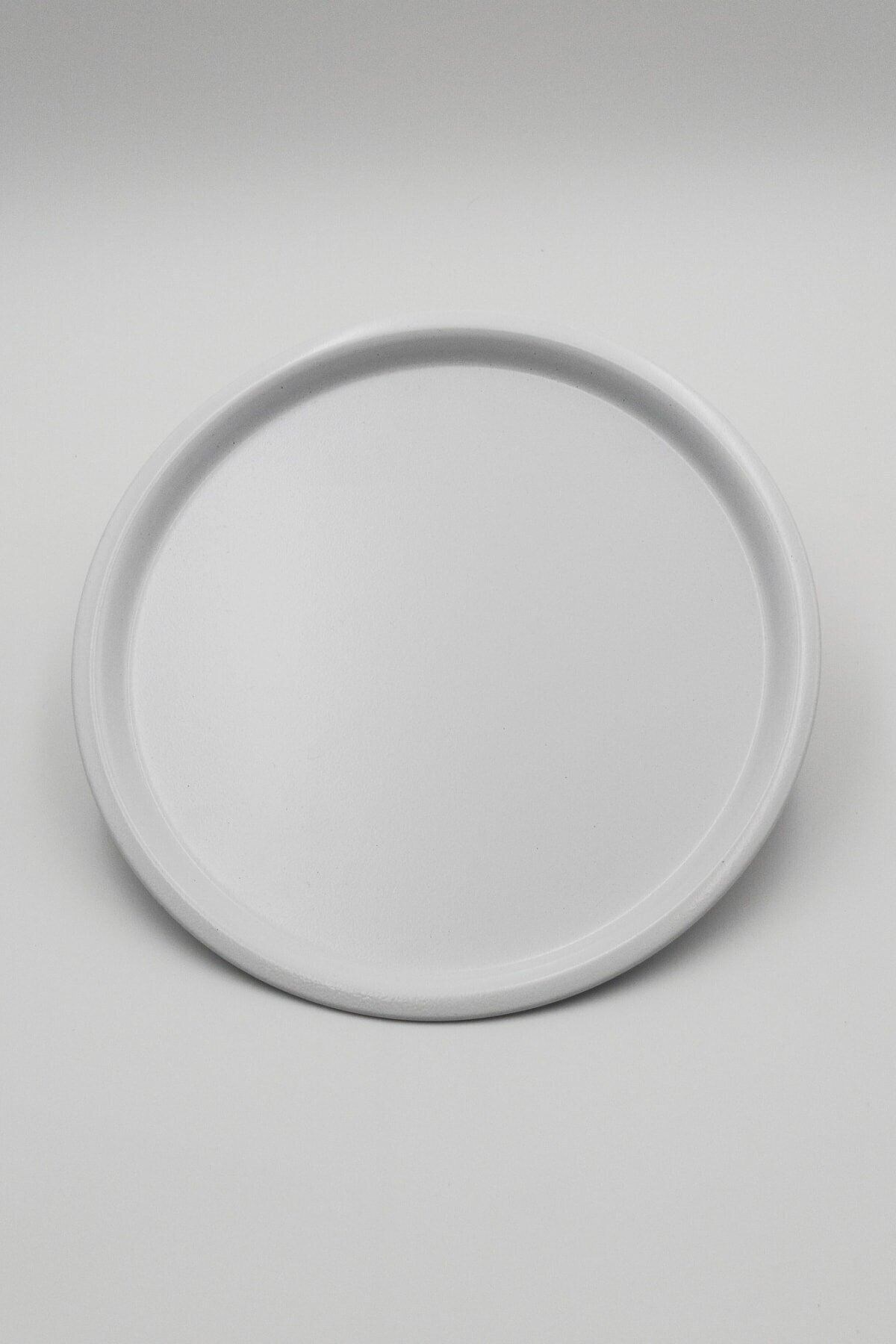 6-Piece White Round Metal Tray, Single Tea and Coffee Serving Tray 22cm