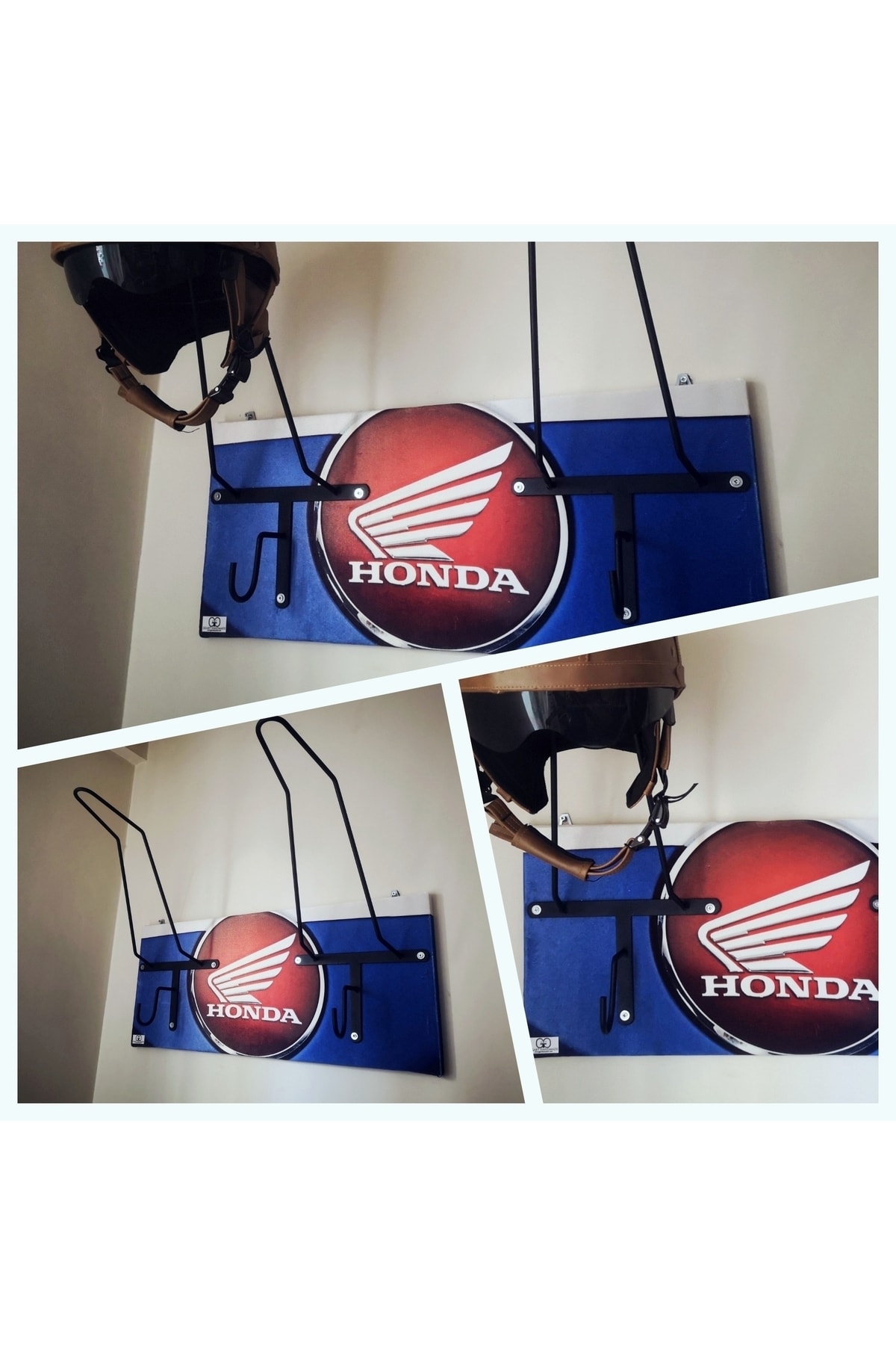 BIKER EQUIPMENT - HELMET RACK SPECIAL HELMET - EQUIPMENT RACK FOR MOTORCYCLER FEATURES; - SPECIAL DESIGN THAT DOES NOT CONTACT THE PAD. The angles and lengths of the metal parts are special and do not come into contact with the protective pad inside the helmet. It rests on the visor upper gap and the upper part of the neck, allowing the helmet to lie flat as if it were resting on the head. It is independent of the body. - 6mm TRANSMISSION IRON Does not bend or twist. Oven Baked Static Black Matte Texture Painted Metal Parts do not scratch or rust. - FABRIC OR CANVAS PRINTING DRESSING ON WOODEN PANEL (MDF, MDF LAM) Dressing is done by stretching a special bright 1st Class Canvas print image on 18mm-20mm Wooden Panel. - HELMET RANGER, COAT RANGER and KEYRING HANGER. Cobra hooks for hanging 2 key rings are supplied with the product. You can mount these hooks at any point you want on the panel. There is a hook on the helmet hanger bars to hang your coat on a hanger. Metal parts are delivered disassembled to prevent damage to the panel during shipping. You can mount it practically with 3 screws. Screws and washers are packaged within the product. - EASY SETUP. Easy installation with two hangers on the back. All you have to do is place a dowel and two screws on the wall. You hang the product like a painting. Since the wall type is unknown, the screws and dowels to mount it on the wall are not included in the package. - DIMENSIONS 2 Panel Dimensions 30cmX70cm Single Panel Dimensions 30cmX50cm