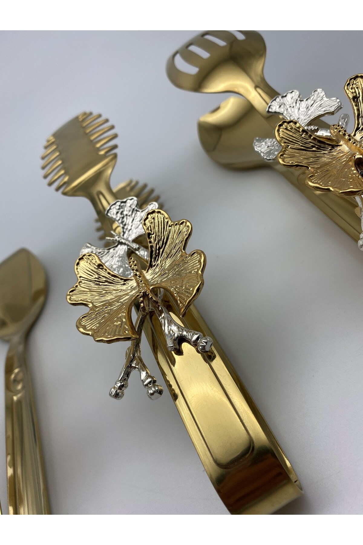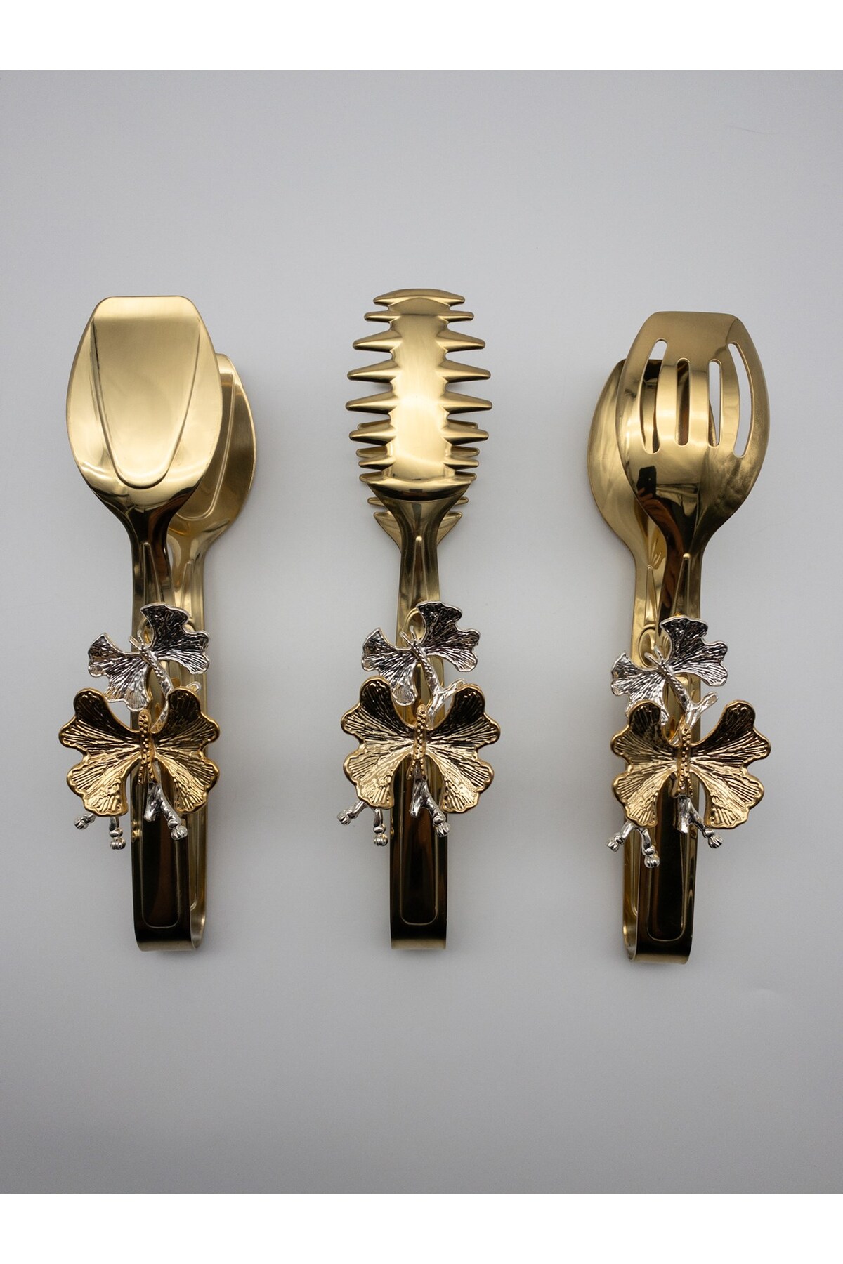 Butterfly Gold Cake, Pasta, Salad and Cake Serving Tongs, Stainless Steel Dining Tongs Set