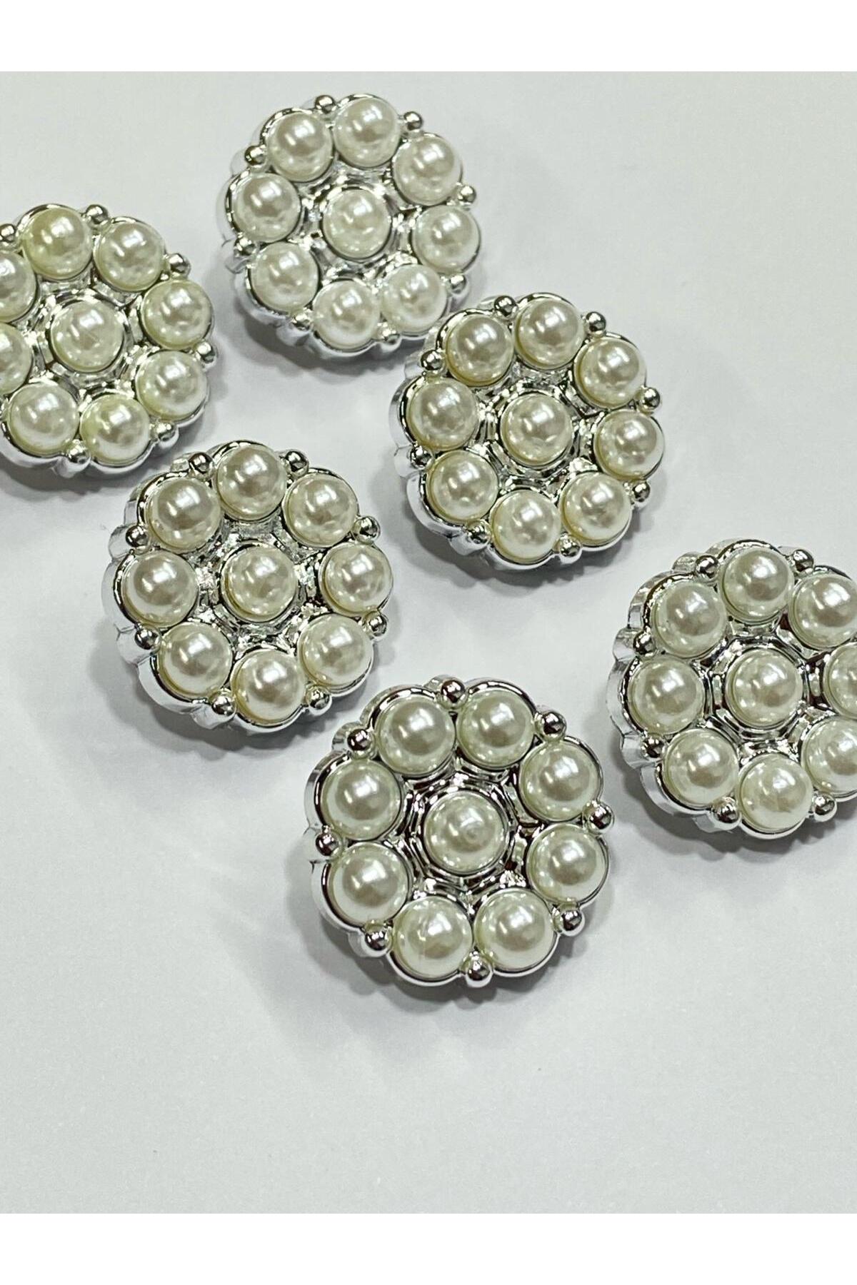 Classic Pearl Model Button / Silver/Metalized (plastic) / Set of 6 / 1.7 cm