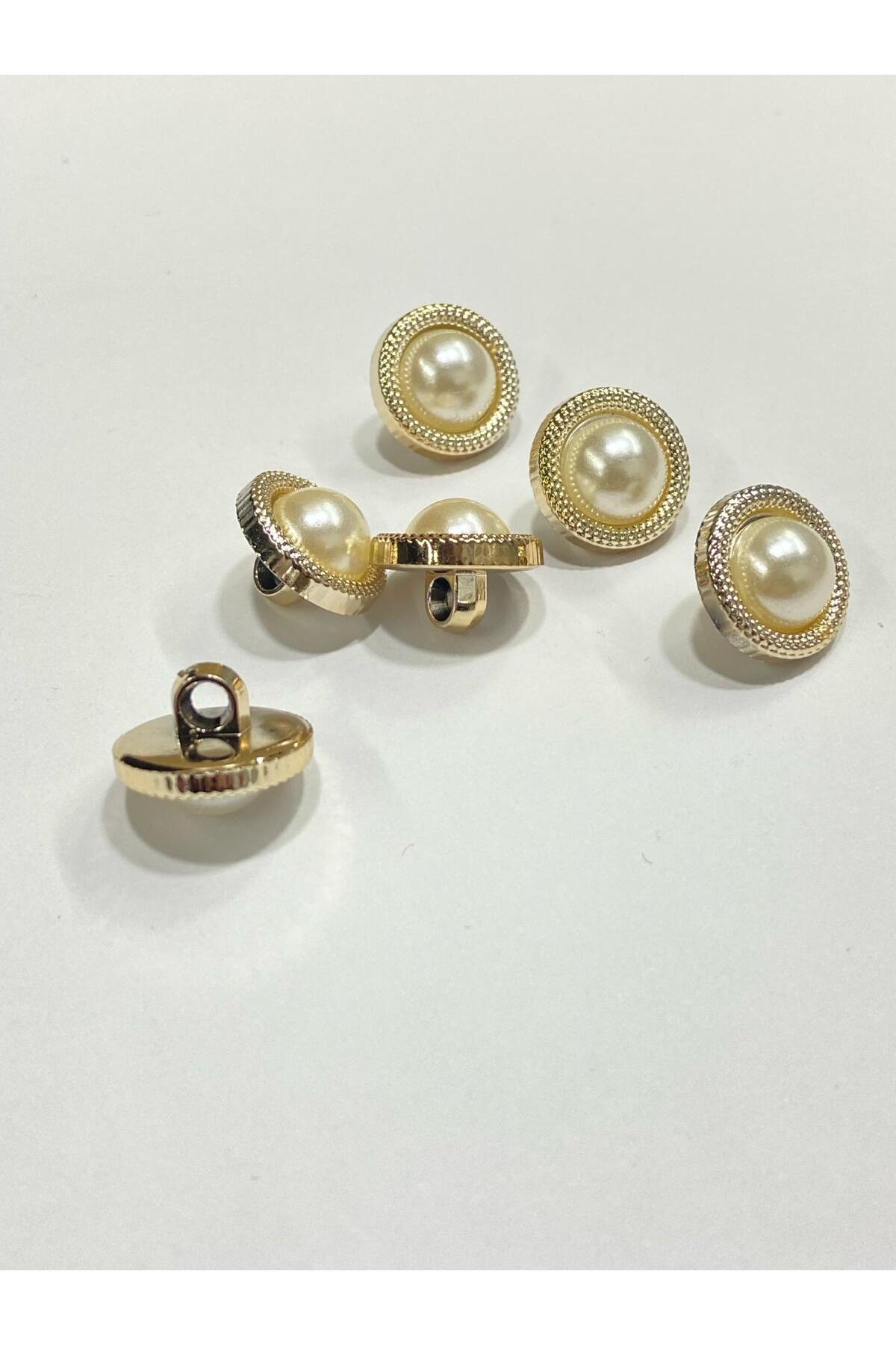 Classic Pearl Model Button / Soft Gold / Metalized (plastic) / Set of 6 / 1.5 cm