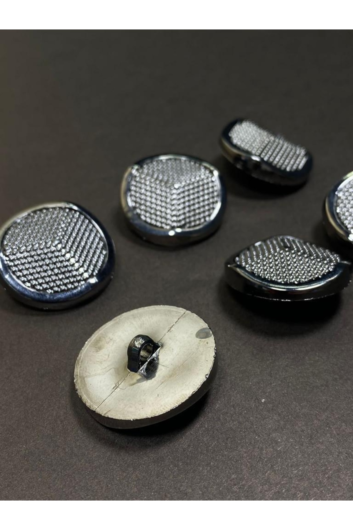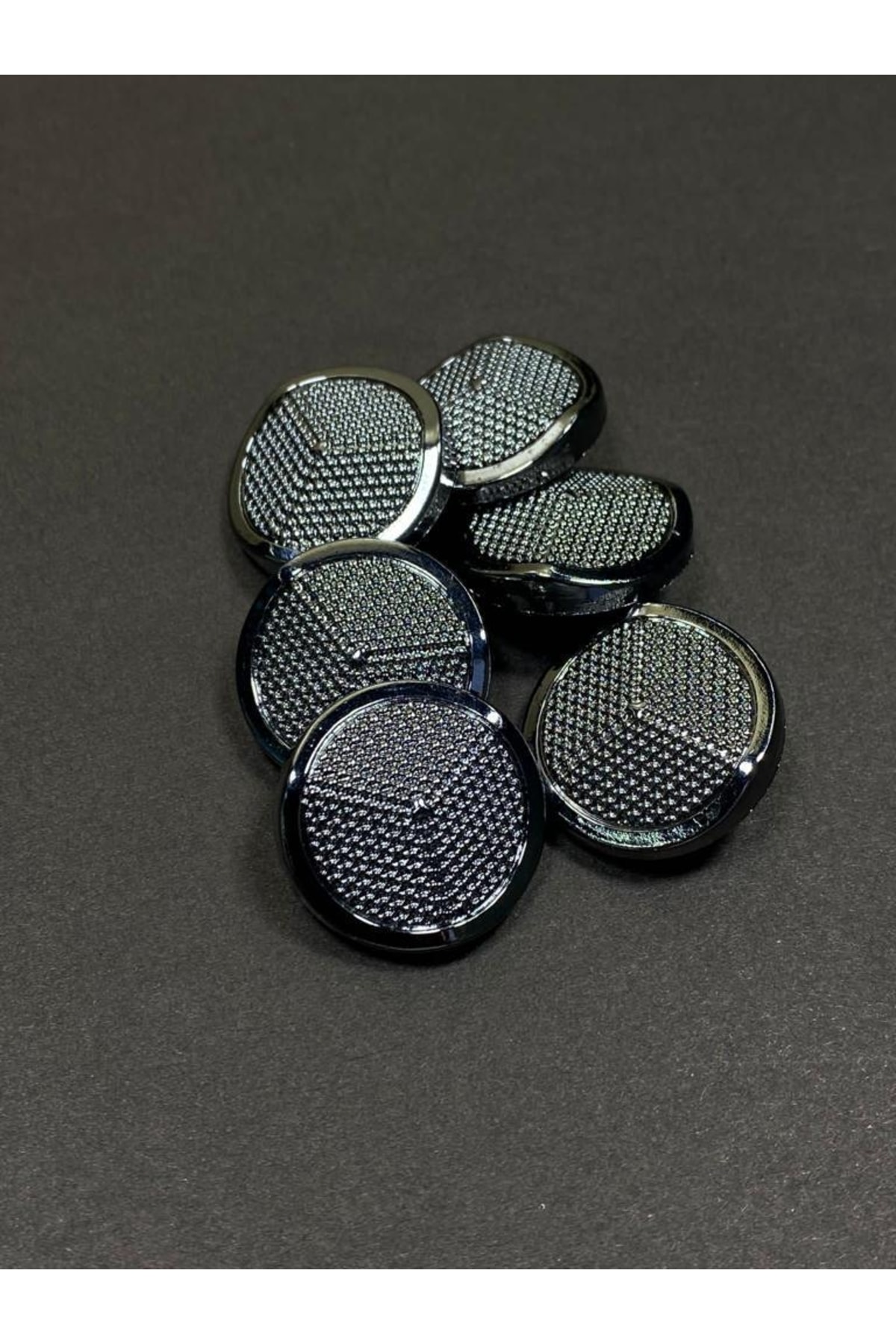 ; metallized (plastic) coated button; ; 6 buttons are sent with 1 purchase; ; size is 3cm diameter; ; color ANTHRACITE;