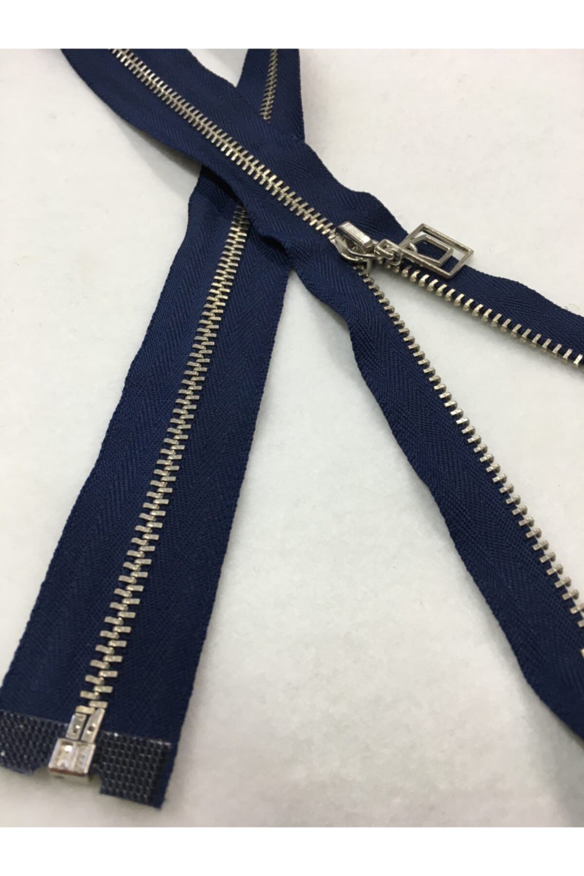 Iron tooth coat cardigan vest zipper 60 cm. Fabric color is dark blue tooth color. It is a zipper that can be divided into two from the bottom. Zippers can be shortened from the top depending on the sewing location. Note: In order to use the zipper for a long time, all zippered products should be closed while washing.