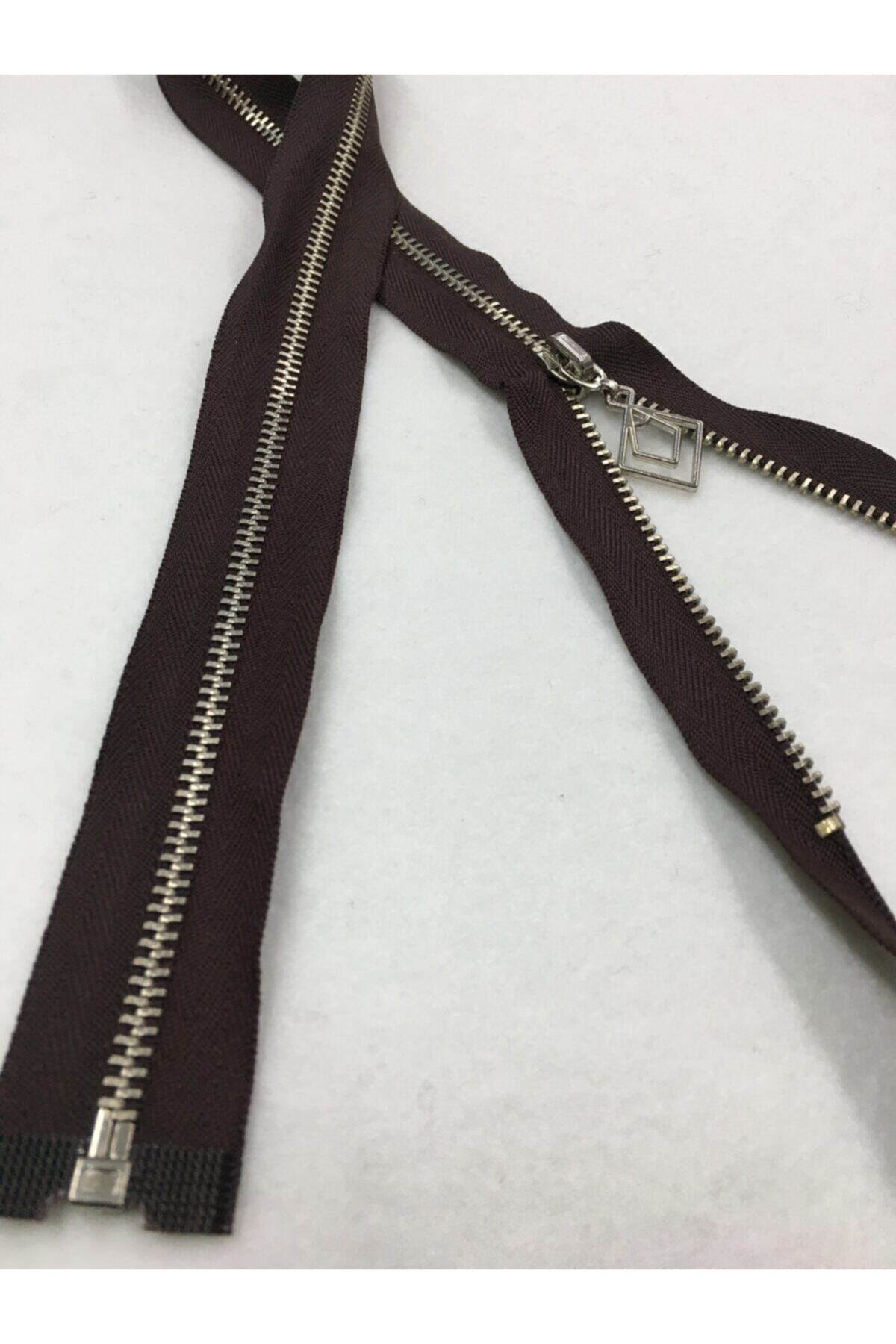 Iron tooth coat cardigan vest zipper 60 cm. Fabric color is brown, tooth color is silver. It is a zipper that can be divided into two from the bottom. Zippers can be shortened from the top depending on the sewing location. Note: In order to use the zipper for a long time, all zippered products should be closed while washing.