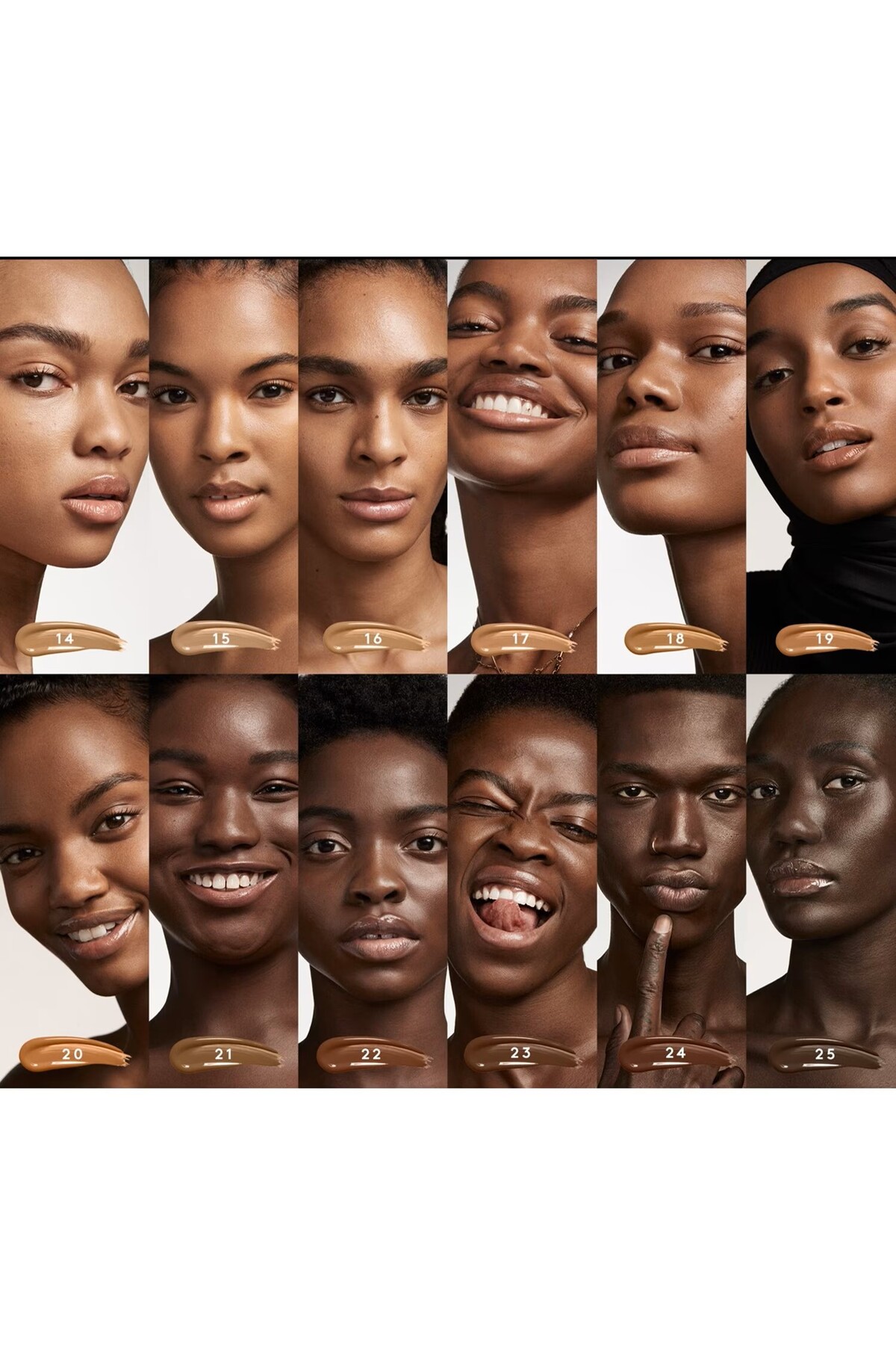 The smoothness is real. Rihanna wanted to create an easy-to-apply, flexible skin tint that instantly evens out your skin tone and gives a nice blurring effect. Featuring HydraBlend complex, Eaze Drop is perfect for a no-makeup makeup look or for when you want to look effortlessly put together. 25 adaptable shade options for everyone. - Instant, blurred skin tone in 25 flexible shades - Buildable light to medium length for long-lasting wear - With HydraBlend Complex for a hydrating, diffused effect - Smooth texture that layers well with primer and skincare - Blend in with fingers or brush Applies well - Moisture, sweat and transfer resistant formula