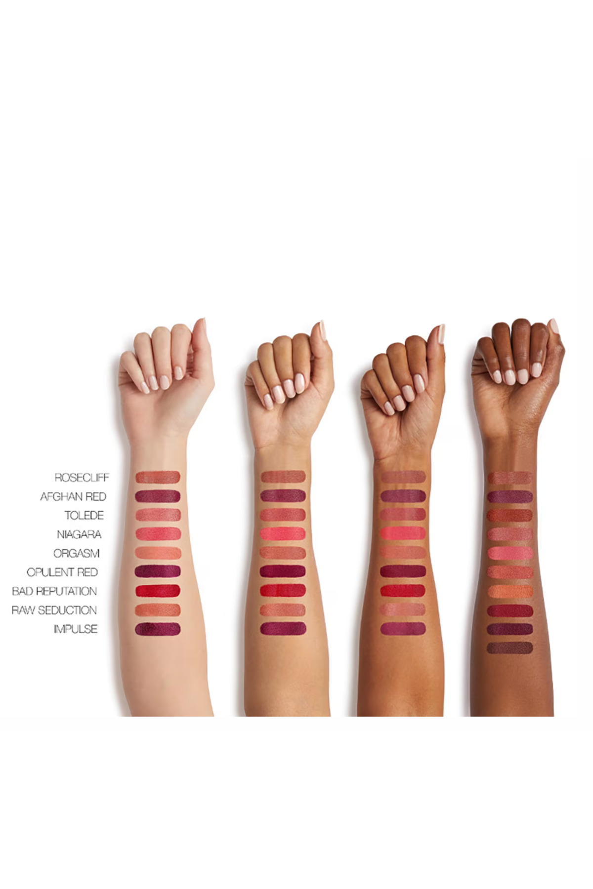 NARS' widest color range in the lipstick category. It offers 60 fascinating shades, matte, satin and sparkling finishes. Innovative Formula: With its light structure, it provides a smooth and long-lasting feeling of comfort in all finishes and even in dark colors. Important ingredients: It revitalizes the skin with its formula containing Passion Fruit Seed Oil, and increases and protects the color quality with Moringa Fruit Seed Oil. New Packaging: All colors feature special soft-touch black matte packaging and the white NARS logo.....