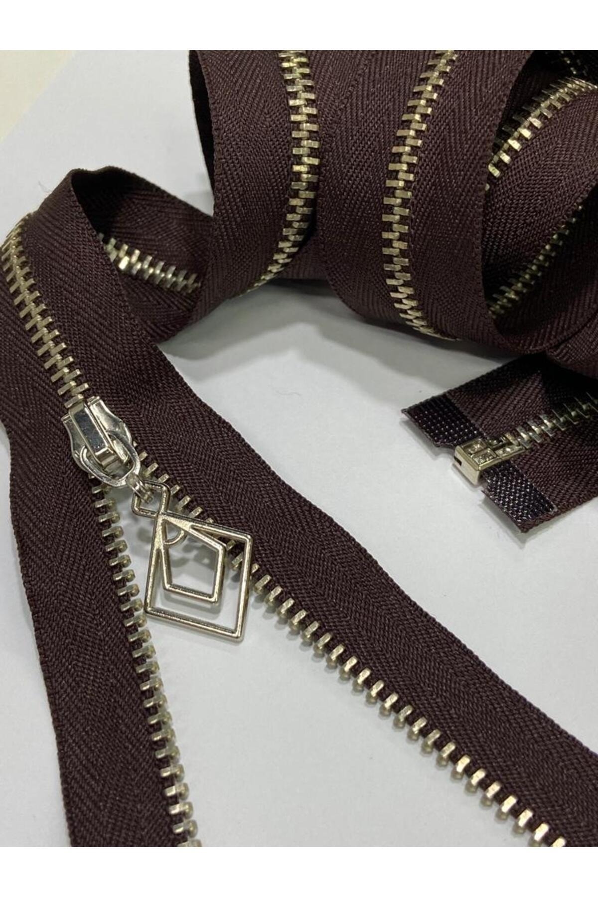Iron tooth coat coat zipper / 80 cm / BROWN / silver teeth / no 4,5