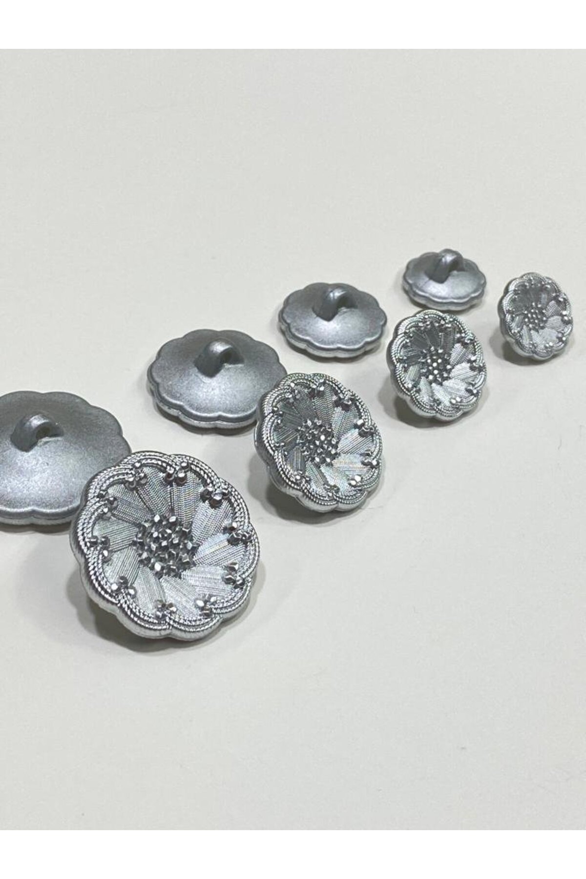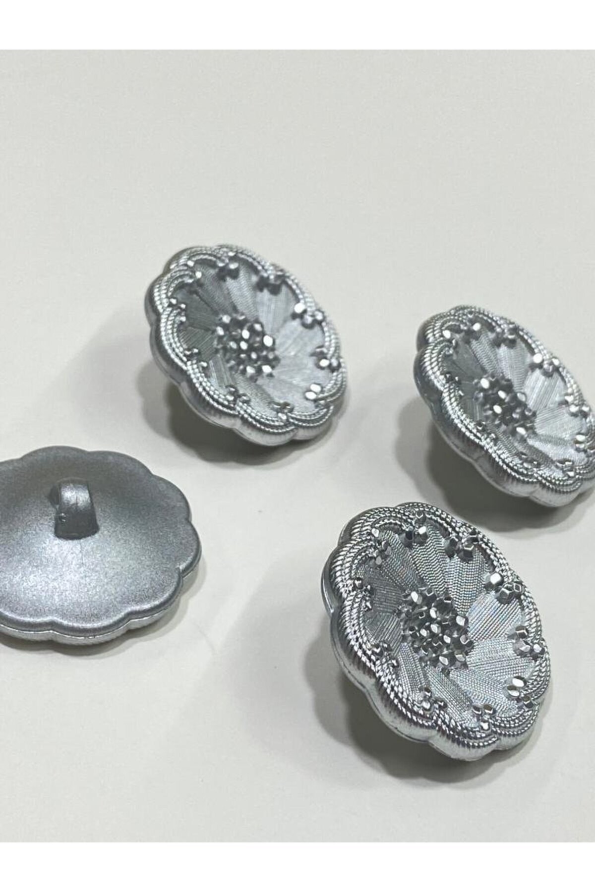 Italian button 2.7 Cm; Silver Italian model; 4 buttons are sent with 1 purchase; Dimensions are available in the photos; You can find the same button model in 4 different sizes in our store under the name (Italian Model).;