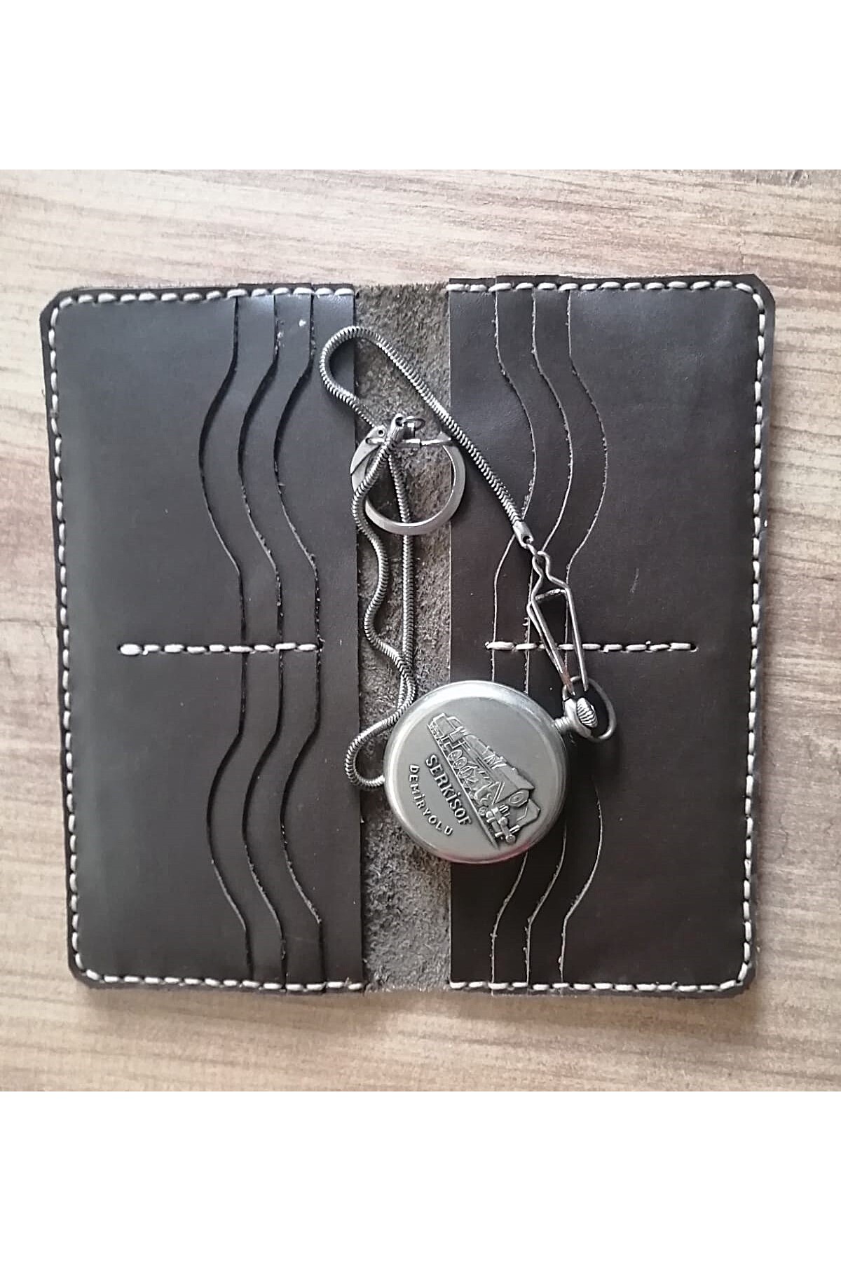 Large, Calf Leather, Used Wax Floss, Handmade Wallet, Closed: 9x19 cm, Open: 19x19 cm