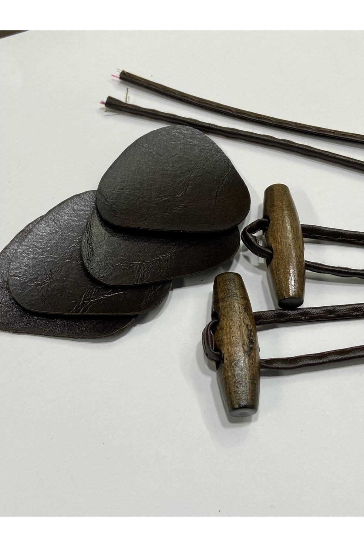 Leather Button Wooden Shepherd Button / Wooden / Set of 2