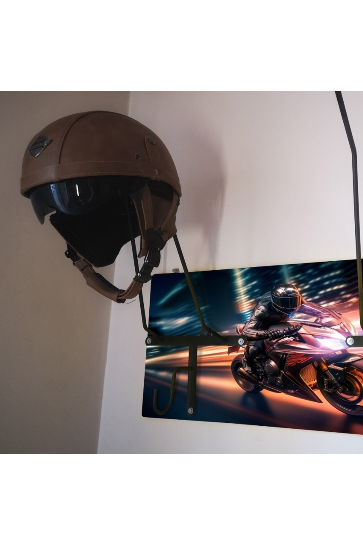 SPECIAL HELMET HANGER, COAT RACK, EQUIPMENT RACK FOR MOTORCYCLERS Product Features SPECIAL DESIGN THAT DOES NOT CONTACT THE PAD - Metal part angles and lengths are specially designed and do not come into contact with the protective pad inside the helmet. When you place your helmet correctly, it rests on the visor upper gap and the upper part of the neck, allowing your helmet to lie flat as if it were on your head, without touching the pad. - The metal design of the helmet hangers is independent of the size of your helmet and is suitable for all sizes. - It is manufactured using 6mm Transmission iron. It does not bend or bend and is extremely durable. - Baked Electrostatic Black Matte Texture Painted. In this way, the metal parts do not scratch or rust and maintain their form for years. - Panels used in wooden models are made of BB - BC quality natural wood solid panels (models with smooth edges are X2-MP, Pine or Spruce) or specially cut from imported Russian pine and made of solid, one-piece natural wood panels (models with natural looking edges are X2-Natura). is manufactured. - Printed and illustrated models are Glossy 1st Class Canvas prints. The canvas print is placed on a wooden panel and stapled at the back. HELMET RACK, COAT RANGER and KEYRING RANGER - 2 cobra hooks are delivered with the product to hang your keys. You can mount these hooks at any point you want on the panel. - There is a hook on each metal part of the helmet hanger bars to hang your coat on the clothes hanger. Metal parts are delivered disassembled to prevent damage to the panel during shipping. You can mount it practically with 3 screws. Screws and washers are packaged within the product. EASY INSTALLATION Easy installation with two hangers on the back. All you have to do is place a dowel and two screws on the wall. You hang the product like a painting. Since the wall type is unknown, the screws and dowels to mount it on the wall are not included in the package. Product Dimensions SINGLE HANGERS - 30X50cm back panel size. DOUBLE HANGERS - 30x70cm back wood panel size. ECO MODEL - 10x50cm back wood panel size. PERSONALIZATION - If personalization is desired on the panel, NAME-SURNAME, LOGO or NICKNAME can be engraved with CNC Laser, free of charge, in the lower left corner. - If orders come from sales channels, Genuine Leather is personalized and added to the package. You can easily stick it to any corner of the panel you want. - Do not forget to send your photos in the appropriate resolution and format for our hangers prepared as canvas prints. IN CASE OF SHIPPING AND DAMAGE - Although it is a very, very rare situation that we encounter the product being damaged in shipping, we kindly ask you to please contact us. We always deliver a new one to replace the damaged part. - It is very important for you to spare time for your damaged cargo and keep a cargo damage report so that our efforts do not go to waste. Even if there is no report, we will definitely resolve your grievance. GGART DECORATION - GGART HANDMADE
