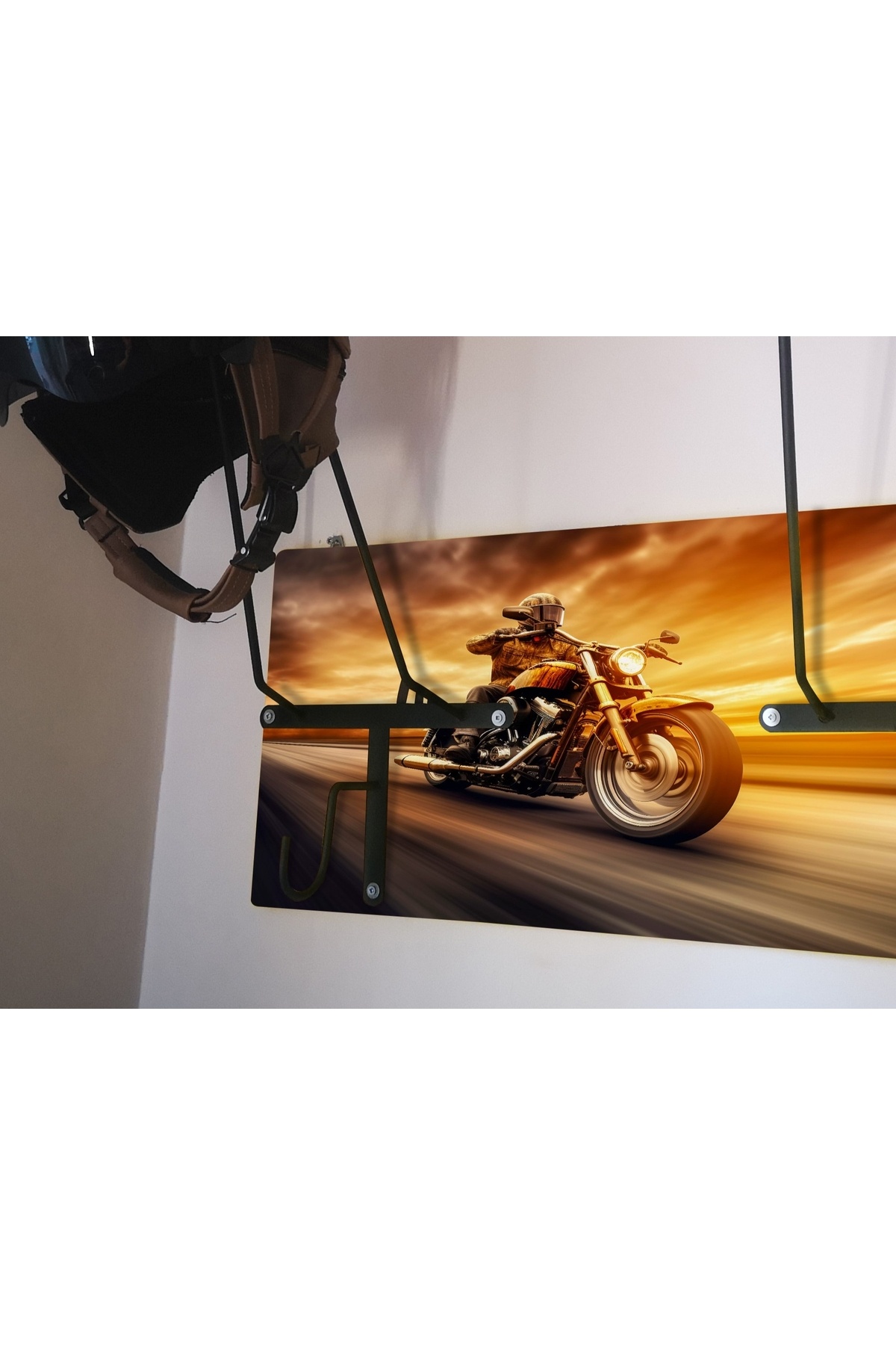 SPECIAL HELMET HANGER, COAT RACK, EQUIPMENT RACK FOR MOTORCYCLERS Product Features SPECIAL DESIGN THAT DOES NOT CONTACT THE PAD - Metal part angles and lengths are specially designed and do not come into contact with the protective pad inside the helmet. When you place your helmet correctly, it rests on the visor upper gap and the upper part of the neck, allowing your helmet to lie flat as if it were on your head, without touching the pad. - The metal design of the helmet hangers is independent of the size of your helmet and is suitable for all sizes. - It is manufactured using 6mm Transmission iron. It does not bend or bend and is extremely durable. - Baked Electrostatic Black Matte Texture Painted. In this way, the metal parts do not scratch or rust and maintain their form for years. - Panels used in wooden models are made of BB - BC quality natural wood solid panels (models with smooth edges are X2-MP, Pine or Spruce) or specially cut from imported Russian pine and made of solid, one-piece natural wood panels (models with natural looking edges are X2-Natura). is manufactured. - Printed and illustrated models are Glossy 1st Class Canvas prints. The canvas print is placed on a wooden panel and stapled at the back. HELMET RACK, COAT RANGER and KEYRING RANGER - 2 cobra hooks are delivered with the product to hang your keys. You can mount these hooks at any point you want on the panel. - There is a hook on each metal part of the helmet hanger bars to hang your coat on the clothes hanger. Metal parts are delivered disassembled to prevent damage to the panel during shipping. You can mount it practically with 3 screws. Screws and washers are packaged within the product. EASY INSTALLATION Easy installation with two hangers on the back. All you have to do is place a dowel and two screws on the wall. You hang the product like a painting. Since the wall type is unknown, the screws and dowels to mount it on the wall are not included in the package. Product Dimensions SINGLE HANGERS - 30X50cm back panel size. DOUBLE HANGERS - 30x70cm back wood panel size. ECO MODEL - 10x50cm back wood panel size. PERSONALIZATION - If personalization is desired on the panel, NAME-SURNAME, LOGO or NICKNAME can be engraved with CNC Laser, free of charge, in the lower left corner. - If orders come from sales channels, Genuine Leather is personalized and added to the package. You can easily stick it to any corner of the panel you want. - Do not forget to send your photos in the appropriate resolution and format for our hangers prepared as canvas prints. IN CASE OF SHIPPING AND DAMAGE - Although it is a very, very rare situation that we encounter the product being damaged in shipping, we kindly ask you to please contact us. We always deliver a new one to replace the damaged part. - It is very important for you to spare time for your damaged cargo and keep a cargo damage report so that our efforts do not go to waste. Even if there is no report, we will definitely resolve your grievance. GGART DECORATION - GGART HANDMADE