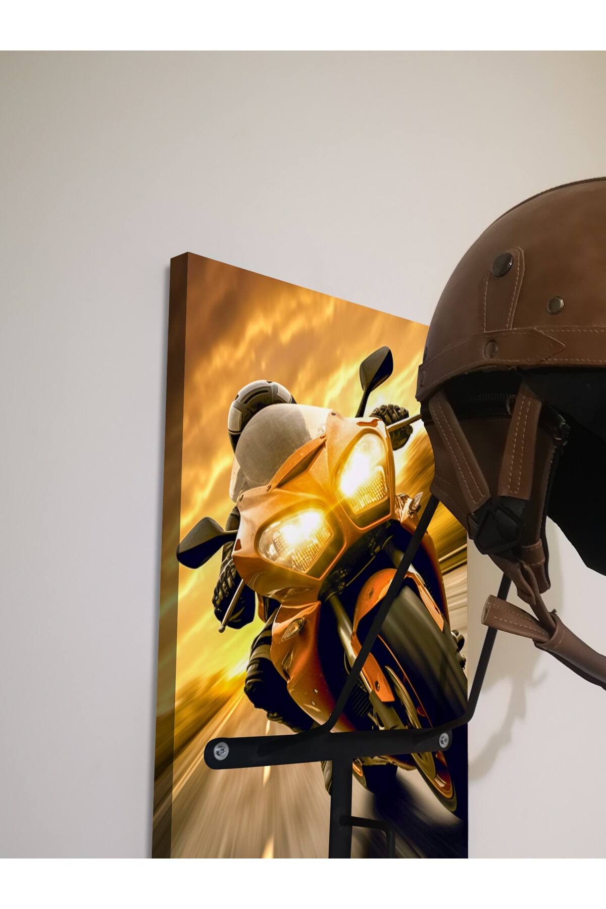 SPECIAL HELMET RACK, MOUNT, EQUIPMENT RACK FOR MOTORCYCLISTS Product Features SPECIAL DESIGN THAT DOES NOT CONTACT THE PAD - Metal part angles and lengths are specially designed and do not come into contact with the protective pad inside the helmet. When you place your helmet correctly, it rests on the visor upper gap and the upper part of the neck, allowing your helmet to lie flat as if it were on your head, without touching the pad. - The metal design of the helmet hangers is independent of the size of your helmet and is suitable for any size. - It is manufactured using 6mm Transmission iron. It does not bend or bend and is extremely durable. - Baked Electrostatic Black Matte Texture Painted. In this way, the metal parts do not scratch or rust and maintain their form for years. - Panels used in wooden models are manufactured from BB - BC quality natural wood solid panels (models with smooth edges are X2-MP, Pine or Spruce) or from single-piece natural wood panels specially cut from imported Russian pine (models with natural appearance are X2-Natura). . - Printed and illustrated models are Glossy 1st Class Canvas prints. The canvas print is placed on a wooden panel and stapled at the back. HELMET RANGER, COAT RANGER and KEYRING HANGER - 2 cobra hooks are delivered with the product to hang your keys. You can mount these hooks at any point you want on the panel. - There is a hook on each metal part to hang your coat on the helmet hanger rails with a clothes hanger. Metal parts are delivered disassembled to prevent damage to the panel during shipping. You can mount it practically with 3 screws. Screws and washers are packaged within the product. EASY INSTALLATION Easy installation with two hangers on the back. It is enough to place a dowel and two screws on the wall. You hang the product like a painting. Since the wall type is unknown, the screws and dowels to mount it on the wall are not included in the package. Product Dimensions SINGLE HANGERS - 30X50cm brand panel size. DOUBLE HANGERS - 30x70cm brand wooden panel size. ECO MODEL - 10x50cm brand wooden panel size. PERSONALIZATION - If personalization is desired on the panel, NAME-SURNAME, LOGO or NAME can be engraved with CNC Laser, free of charge, in the lower left corner. - If orders come through sales channels, Genuine Leather is personalized and added to the package. You can easily stick it to any corner of the panel you want. -Do not forget to send your photos in the appropriate resolution and format for our hangers prepared as canvas prints. IN CASE OF SHIPPING AND DAMAGE - Damage to the product in cargo is a very rare situation that we encounter, but we kindly ask you to contact us. We always replace the damaged part with a new one. - It is very important for you to take time for your damaged cargo and keep a cargo damage report so that our efforts do not go to waste. Even if there is no report, we will definitely be resolving your grievance. NOTE: Helmets and coats are not for sale. The product on sale is HELMET RACK. GGARTDECORATION GGARTHANDMADE ls2, axxis,nexx, jk20, ncr, sway, helmets, bell, freem, jarvis, mt, gopro, gdr, caberg,agv, aerowind, cox, ncr, jk, tex, shark, shoei, airoh, givi, hjc, suomy, arai,premier, revit, tucano, vexo, rsv, harley, venom, motul, oem, jiekai, monero,bering, kappa, salomon, nero, momo, macna, knmaster, schuberth, shiro, iron, akrapovic, rectus, gojo, mitas, daniese, divortex, vizor, putoline, ktm, yuma, buffer, ariete, shad, schulzz, bitwell, universal, maxxis, leyaton, tiens, bajaj, gogo, andes