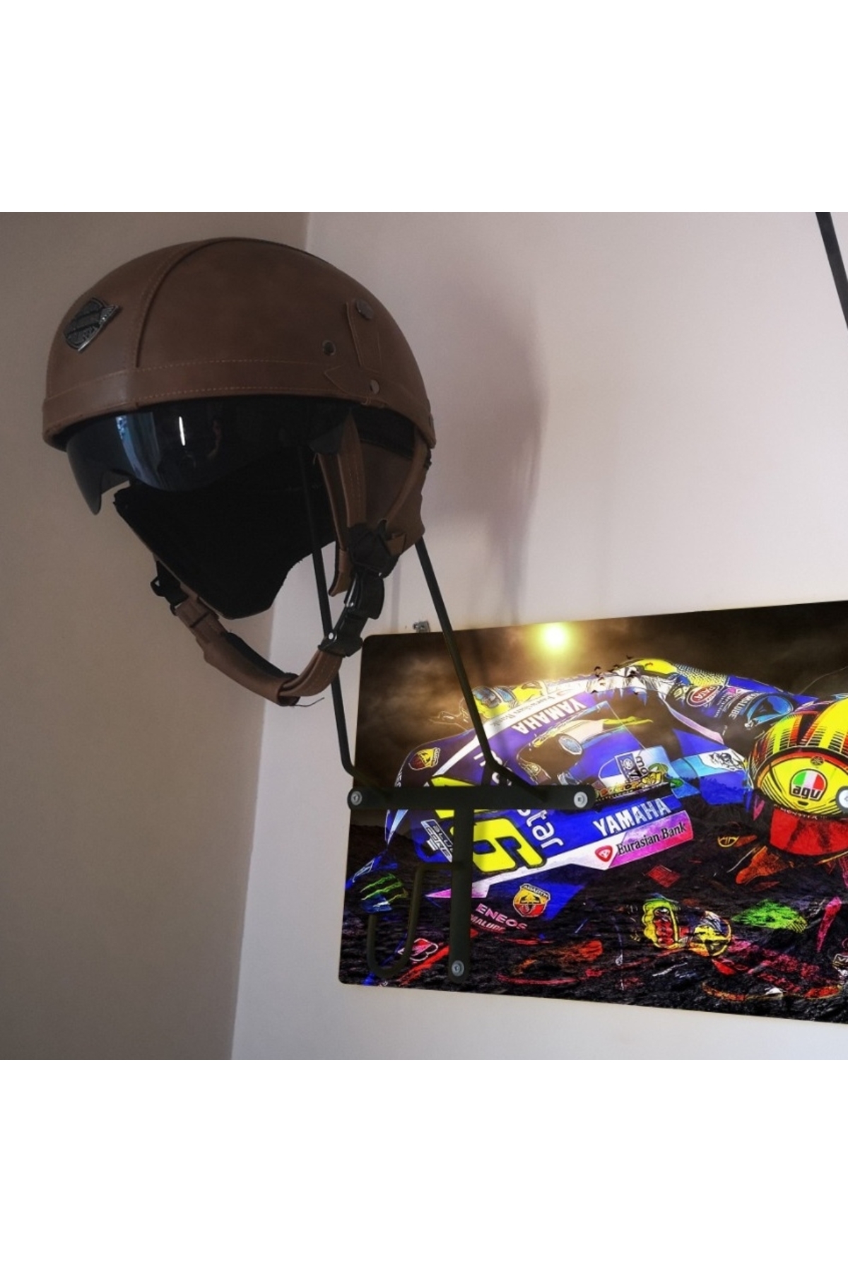 SPECIAL HELMET HANGER, COAT RACK, EQUIPMENT RACK FOR MOTORCYCLERS Product Features SPECIAL DESIGN THAT DOES NOT CONTACT THE PAD - Metal part angles and lengths are specially designed and do not come into contact with the protective pad inside the helmet. When you place your helmet correctly, it rests on the visor upper gap and the upper part of the neck, allowing your helmet to lie flat as if it were on your head, without touching the pad. - The metal design of the helmet hangers is independent of the size of your helmet and is suitable for all sizes. - It is manufactured using 6mm Transmission iron. It does not bend or bend and is extremely durable. - Baked Electrostatic Black Matte Texture Painted. In this way, the metal parts do not scratch or rust and maintain their form for years. - Panels used in wooden models are made of BB - BC quality natural wood solid panels (models with smooth edges are X2-MP, Pine or Spruce) or specially cut from imported Russian pine and made of solid, one-piece natural wood panels (models with natural looking edges are X2-Natura). is manufactured. - Printed and illustrated models are Glossy 1st Class Canvas prints. The canvas print is placed on a wooden panel and stapled at the back. HELMET RACK, COAT RANGER and KEYRING RANGER - 2 cobra hooks are delivered with the product to hang your keys. You can mount these hooks at any point you want on the panel. - There is a hook on each metal part of the helmet hanger bars to hang your coat on the clothes hanger. Metal parts are delivered disassembled to prevent damage to the panel during shipping. You can mount it practically with 3 screws. Screws and washers are packaged within the product. EASY INSTALLATION Easy installation with two hangers on the back. All you have to do is place a dowel and two screws on the wall. You hang the product like a painting. Since the wall type is unknown, the screws and dowels to mount it on the wall are not included in the package. Product Dimensions SINGLE HANGERS - 30X50cm back panel size. DOUBLE HANGERS - 30x70cm back wood panel size. ECO MODEL - 10x50cm back wood panel size. PERSONALIZATION - If personalization is desired on the panel, NAME-SURNAME, LOGO or NICKNAME can be engraved with CNC Laser, free of charge, in the lower left corner. - If orders come from sales channels, Genuine Leather is personalized and added to the package. You can easily stick it to any corner of the panel you want. - Do not forget to send your photos in the appropriate resolution and format for our hangers prepared as canvas prints. IN CASE OF SHIPPING AND DAMAGE - Although it is a very, very rare situation that we encounter the product being damaged in shipping, we kindly ask you to please contact us. We always deliver a new one to replace the damaged part. - It is very important for you to spare time for your damaged cargo and keep a cargo damage report so that our efforts do not go to waste. Even if there is no report, we will definitely resolve your grievance. GGART DECORATION - GGART HANDMADE