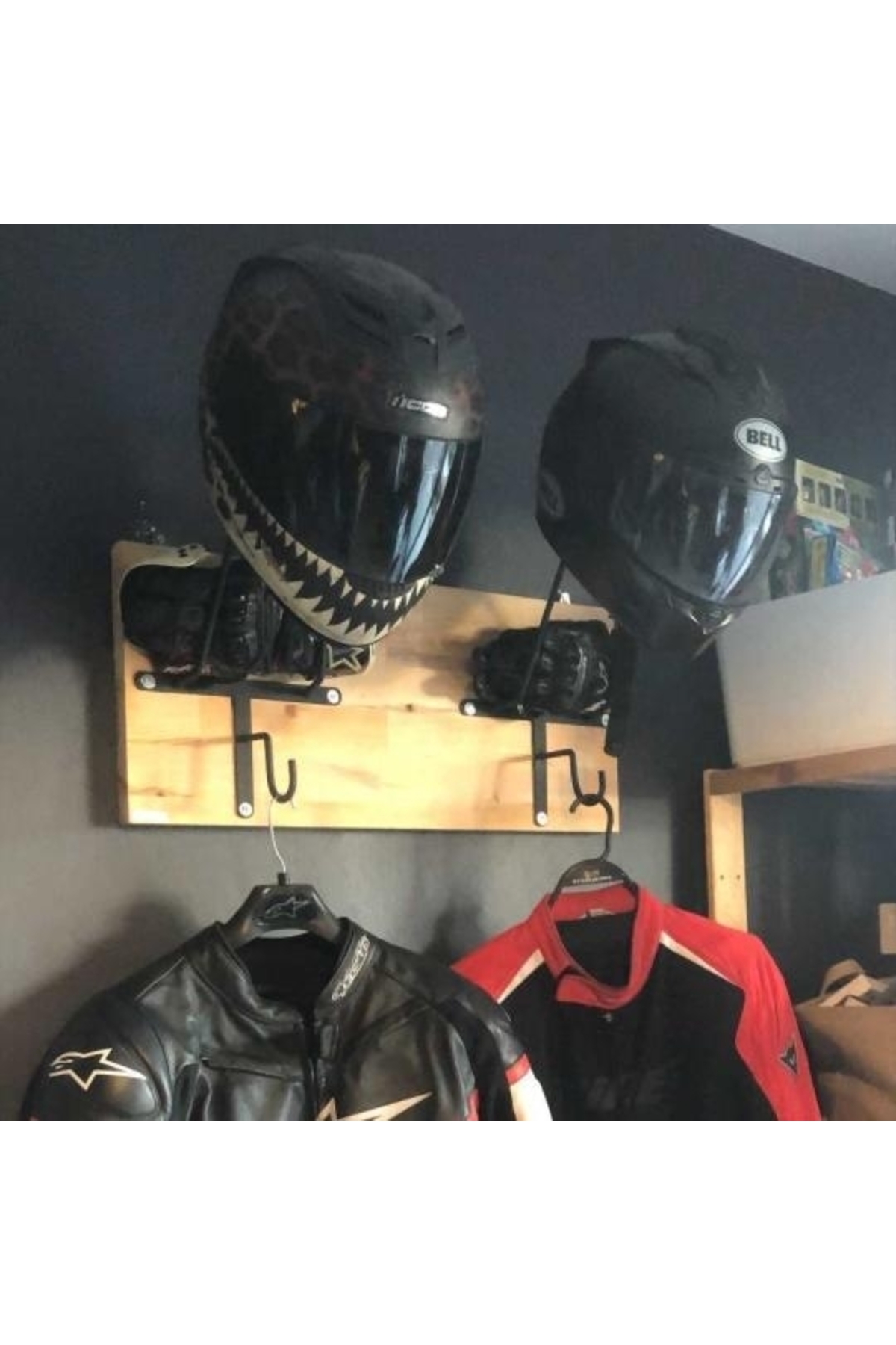 SPECIAL HELMET HANGER, COAT RACK, EQUIPMENT RACK FOR MOTORCYCLERS Product Features SPECIAL DESIGN THAT DOES NOT CONTACT THE PAD - Metal part angles and lengths are specially designed and do not come into contact with the protective pad inside the helmet. When you place your helmet correctly, it rests on the visor upper gap and the upper part of the neck, allowing your helmet to lie flat as if it were on your head, without touching the pad. - The metal design of the helmet hangers is independent of the size of your helmet and is suitable for all sizes. - It is manufactured using 6mm Transmission iron. It does not bend or bend and is extremely durable. - Baked Electrostatic Black Matte Texture Painted. In this way, the metal parts do not scratch or rust and maintain their form for years. - Panels used in wooden models are made of BB - BC quality natural wood solid panels (models with smooth edges are X2-MP, Pine or Spruce) or specially cut from imported Russian pine and made of solid, one-piece natural wood panels (models with natural looking edges are X2-Natura). is manufactured. - Printed and illustrated models are Glossy 1st Class Canvas prints. The canvas print is placed on a wooden panel and stapled at the back. HELMET RACK, COAT RANGER and KEYRING RANGER - 2 cobra hooks are delivered with the product to hang your keys. You can mount these hooks at any point you want on the panel. - There is a hook on each metal part of the helmet hanger bars to hang your coat on the clothes hanger. Metal parts are delivered disassembled to prevent damage to the panel during shipping. You can mount it practically with 3 screws. Screws and washers are packaged within the product. EASY INSTALLATION Easy installation with two hangers on the back. All you have to do is place a dowel and two screws on the wall. You hang the product like a painting. Since the wall type is unknown, the screws and dowels to mount it on the wall are not included in the package. Product Dimensions SINGLE HANGERS - 30X50cm back panel size. DOUBLE HANGERS - 30x70cm back wood panel size. ECO MODEL - 10x50cm back wood panel size. PERSONALIZATION - If personalization is desired on the panel, NAME-SURNAME, LOGO or NICKNAME can be engraved with CNC Laser, free of charge, in the lower left corner. - If orders come from sales channels, Genuine Leather is personalized and added to the package. You can easily stick it to any corner of the panel you want. - Do not forget to send your photos in the appropriate resolution and format for our hangers prepared as canvas prints. IN CASE OF SHIPPING AND DAMAGE - Although it is a very, very rare situation that we encounter the product being damaged in shipping, we kindly ask you to please contact us. We always deliver a new one to replace the damaged part. - It is very important for you to spare time for your damaged cargo and keep a cargo damage report so that our efforts do not go to waste. Even if there is no report, we will definitely resolve your grievance. GGART DECORATION - GGART HANDMADE