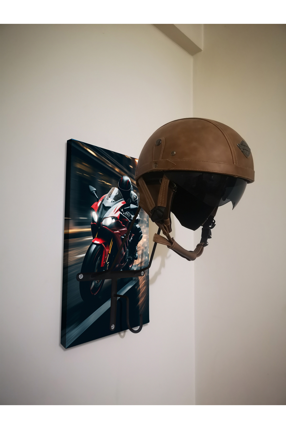 SPECIAL HELMET RACK, MOUNT, EQUIPMENT RACK FOR MOTORCYCLISTS Product Features SPECIAL DESIGN THAT DOES NOT CONTACT THE PAD - Metal part angles and lengths are specially designed and do not come into contact with the protective pad inside the helmet. When you place your helmet correctly, it rests on the visor upper gap and the upper part of the neck, allowing your helmet to lie flat as if it were on your head, without touching the pad. - The metal design of the helmet hangers is independent of the size of your helmet and is suitable for any size. - It is manufactured using 6mm Transmission iron. It does not bend or bend and is extremely durable. - Baked Electrostatic Black Matte Texture Painted. In this way, the metal parts do not scratch or rust and maintain their form for years. - Panels used in wooden models are manufactured from BB - BC quality natural wood solid panels (models with smooth edges are X2-MP, Pine or Spruce) or from single-piece natural wood panels specially cut from imported Russian pine (models with natural appearance are X2-Natura). . - Printed and illustrated models are Glossy 1st Class Canvas prints. The canvas print is placed on a wooden panel and stapled at the back. HELMET RANGER, COAT RANGER and KEYRING HANGER - 2 cobra hooks are delivered with the product to hang your keys. You can mount these hooks at any point you want on the panel. - There is a hook on each metal part to hang your coat on the helmet hanger rails with a clothes hanger. Metal parts are delivered disassembled to prevent damage to the panel during shipping. You can mount it practically with 3 screws. Screws and washers are packaged within the product. EASY INSTALLATION Easy installation with two hangers on the back. It is enough to place a dowel and two screws on the wall. You hang the product like a painting. Since the wall type is unknown, the screws and dowels to mount it on the wall are not included in the package. Product Dimensions SINGLE HANGERS - 30X50cm brand panel size. DOUBLE HANGERS - 30x70cm brand wooden panel size. ECO MODEL - 10x50cm brand wooden panel size. PERSONALIZATION - If personalization is desired on the panel, NAME-SURNAME, LOGO or NAME can be engraved with CNC Laser, free of charge, in the lower left corner. - If orders come through sales channels, Genuine Leather is personalized and added to the package. You can easily stick it to any corner of the panel you want. -Do not forget to send your photos in the appropriate resolution and format for our hangers prepared as canvas prints. IN CASE OF SHIPPING AND DAMAGE - Damage to the product in cargo is a very rare situation that we encounter, but we kindly ask you to contact us. We always replace the damaged part with a new one. - It is very important for you to take time for your damaged cargo and keep a cargo damage report so that our efforts do not go to waste. Even if there is no report, we will definitely be resolving your grievance. NOTE: Helmets and coats are not for sale. The product on sale is HELMET RACK. GGARTDECORATION GGARTHANDMADE ls2, axxis,nexx, jk20, ncr, sway, helmets, bell, freem, jarvis, mt, gopro, gdr, caberg,agv, aerowind, cox, ncr, jk, tex, shark, shoei, airoh, givi, hjc, suomy, arai,premier, revit, tucano, vexo, rsv, harley, venom, motul, oem, jiekai, monero,bering, kappa, salomon, nero, momo, macna, knmaster, schuberth, shiro, iron, akrapovic, rectus, gojo, mitas, daniese, divortex, vizor, putoline, ktm, yuma, buffer, ariete, shad, schulzz, bitwell, universal, maxxis, leyaton, tiens, bajaj, gogo, andes