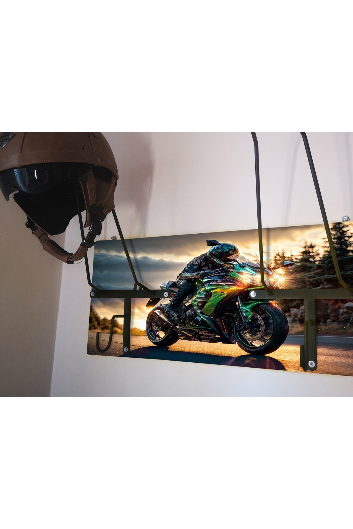 SPECIAL HELMET RACK, MOUNT, EQUIPMENT RACK FOR MOTORCYCLISTS Product Features SPECIAL DESIGN THAT DOES NOT CONTACT THE PAD - Metal part angles and lengths are specially designed and do not come into contact with the protective pad inside the helmet. When you place your helmet correctly, it rests on the visor upper gap and the upper part of the neck, allowing your helmet to lie flat as if it were on your head, without touching the pad. - The metal design of the helmet hangers is independent of the size of your helmet and is suitable for any size. - It is manufactured using 6mm Transmission iron. It does not bend or bend and is extremely durable. - Baked Electrostatic Black Matte Texture Painted. In this way, the metal parts do not scratch or rust and maintain their form for years. - Panels used in wooden models are manufactured from BB - BC quality natural wood solid panels (models with smooth edges are X2-MP, Pine or Spruce) or from single-piece natural wood panels specially cut from imported Russian pine (models with natural appearance are X2-Natura). . - Printed and illustrated models are Glossy 1st Class Canvas prints. The canvas print is placed on a wooden panel and stapled at the back. HELMET RANGER, COAT RANGER and KEYRING HANGER - 2 cobra hooks are delivered with the product to hang your keys. You can mount these hooks at any point you want on the panel. - There is a hook on each metal part to hang your coat on the helmet hanger rails with a clothes hanger. Metal parts are delivered disassembled to prevent damage to the panel during shipping. You can mount it practically with 3 screws. Screws and washers are packaged within the product. EASY INSTALLATION Easy installation with two hangers on the back. It is enough to place a dowel and two screws on the wall. You hang the product like a painting. Since the wall type is unknown, the screws and dowels to mount it on the wall are not included in the package. Product Dimensions SINGLE HANGERS - 30X50cm brand panel size. DOUBLE HANGERS - 30x70cm brand wooden panel size. ECO MODEL - 10x50cm brand wooden panel size. PERSONALIZATION - If personalization is desired on the panel, NAME-SURNAME, LOGO or NAME can be engraved with CNC Laser, free of charge, in the lower left corner. - If orders come through sales channels, Genuine Leather is personalized and added to the package. You can easily stick it to any corner of the panel you want. -Do not forget to send your photos in the appropriate resolution and format for our hangers prepared as canvas prints. IN CASE OF SHIPPING AND DAMAGE - Damage to the product in cargo is a very rare situation that we encounter, but we kindly ask you to contact us. We always replace the damaged part with a new one. - It is very important for you to take time for your damaged cargo and keep a cargo damage report so that our efforts do not go to waste. Even if there is no report, we will definitely be resolving your grievance. NOTE: Helmets and coats are not for sale. The product on sale is HELMET RACK. GGARTDECORATION GGARTHANDMADE ls2, axxis,nexx, jk20, ncr, sway, helmets, bell, freem, jarvis, mt, gopro, gdr, caberg,agv, aerowind, cox, ncr, jk, tex, shark, shoei, airoh, givi, hjc, suomy, arai,premier, revit, tucano, vexo, rsv, harley, venom, motul, oem, jiekai, monero,bering, kappa, salomon, nero, momo, macna, knmaster, schuberth, shiro, iron, akrapovic, rectus, gojo, mitas, daniese, divortex, vizor, putoline, ktm, yuma, buffer, ariete, shad, schulzz, bitwell, universal, maxxis, leyaton, tiens, bajaj, gogo, andes