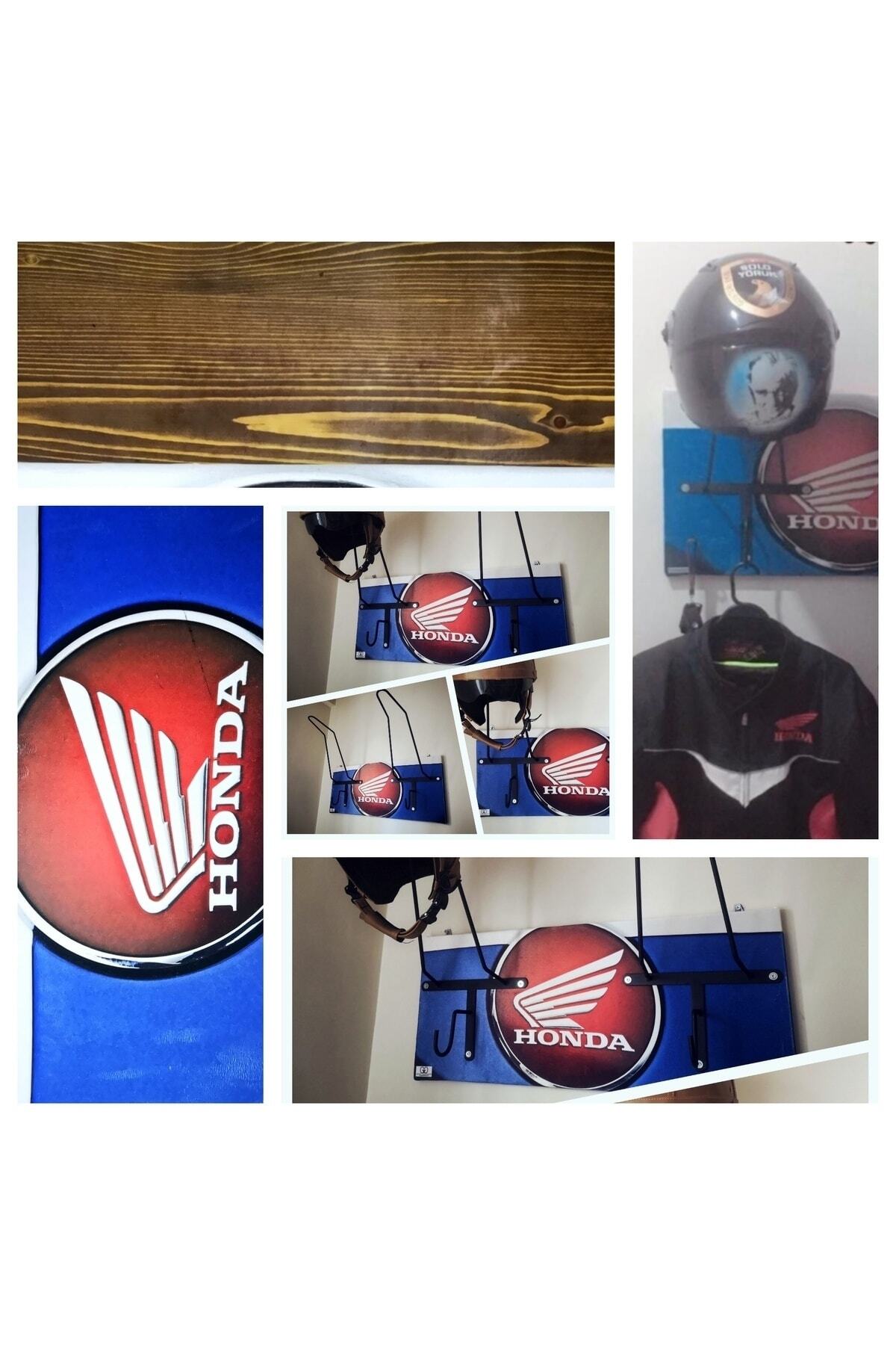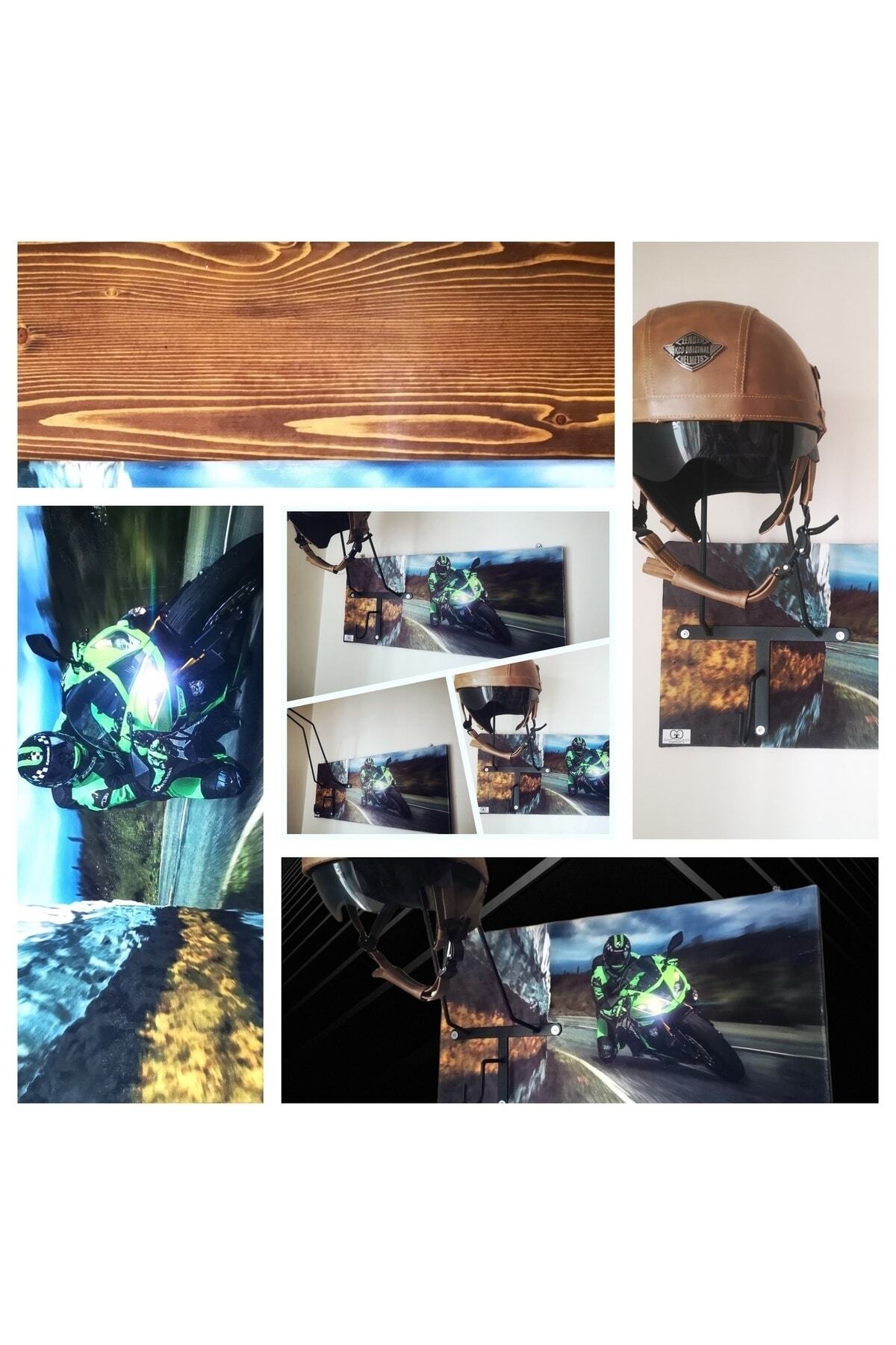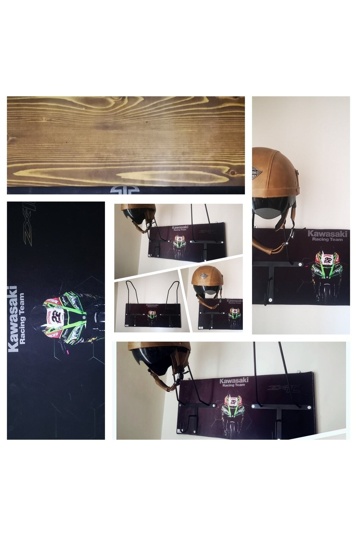 SPECIAL HELMET RACK, MOUNT, EQUIPMENT RACK FOR MOTORCYCLISTS Product Features SPECIAL DESIGN THAT DOES NOT CONTACT THE PAD - Metal part angles and lengths are specially designed and do not come into contact with the protective pad inside the helmet. When you place your helmet correctly, it rests on the visor upper gap and the upper part of the neck, allowing your helmet to lie flat as if it were on your head, without touching the pad. - The metal design of the helmet hangers is independent of the size of your helmet and is suitable for any size. - It is manufactured using 6mm Transmission iron. It does not bend or bend and is extremely durable. - Baked Electrostatic Black Matte Texture Painted. In this way, the metal parts do not scratch or rust and maintain their form for years. - Panels used in wooden models are manufactured from BB - BC quality natural wood solid panels (models with smooth edges are X2-MP, Pine or Spruce) or from single-piece natural wood panels specially cut from imported Russian pine (models with natural appearance are X2-Natura). . - Printed and illustrated models are Glossy 1st Class Canvas prints. The canvas print is placed on a wooden panel and stapled at the back. HELMET RANGER, COAT RANGER and KEYRING HANGER - 2 cobra hooks are delivered with the product to hang your keys. You can mount these hooks at any point you want on the panel. - There is a hook on each metal part to hang your coat on the helmet hanger rails with a clothes hanger. Metal parts are delivered disassembled to prevent damage to the panel during shipping. You can mount it practically with 3 screws. Screws and washers are packaged within the product. EASY INSTALLATION Easy installation with two hangers on the back. It is enough to place a dowel and two screws on the wall. You hang the product like a painting. Since the wall type is unknown, the screws and dowels to mount it on the wall are not included in the package. Product Dimensions SINGLE HANGERS - 30X50cm brand panel size. DOUBLE HANGERS - 30x70cm brand wooden panel size. ECO MODEL - 10x50cm brand wooden panel size. PERSONALIZATION - If personalization is desired on the panel, NAME-SURNAME, LOGO or NAME can be engraved with CNC Laser, free of charge, in the lower left corner. - If orders come through sales channels, Genuine Leather is personalized and added to the package. You can easily stick it to any corner of the panel you want. -Do not forget to send your photos in the appropriate resolution and format for our hangers prepared as canvas prints. IN CASE OF SHIPPING AND DAMAGE - Damage to the product in cargo is a very rare situation that we encounter, but we kindly ask you to contact us. We always replace the damaged part with a new one. - It is very important for you to take time for your damaged cargo and keep a cargo damage report so that our efforts do not go to waste. Even if there is no report, we will definitely be resolving your grievance. NOTE: Helmets and coats are not for sale. The product on sale is HELMET RACK. GGARTDECORATION GGARTHANDMADE ls2, axxis,nexx, jk20, ncr, sway, helmets, bell, freem, jarvis, mt, gopro, gdr, caberg,agv, aerowind, cox, ncr, jk, tex, shark, shoei, airoh, givi, hjc, suomy, arai,premier, revit, tucano, vexo, rsv, harley, venom, motul, oem, jiekai, monero,bering, kappa, salomon, nero, momo, macna, knmaster, schuberth, shiro, iron, akrapovic, rectus, gojo, mitas, daniese, divortex, vizor, putoline, ktm, yuma, buffer, ariete, shad, schulzz, bitwell, universal, maxxis, leyaton, tiens, bajaj, gogo, andes