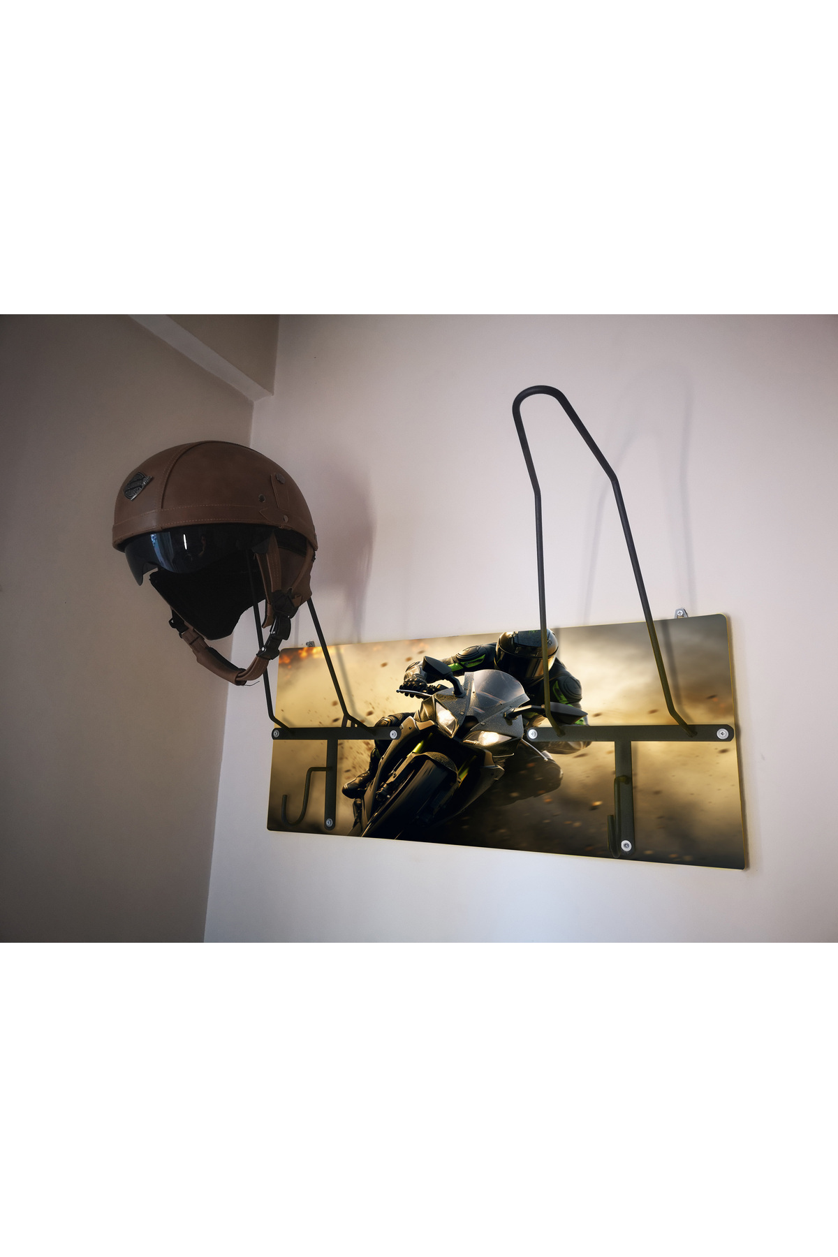 SPECIAL HELMET RACK, MOUNT, EQUIPMENT RACK FOR MOTORCYCLISTS Product Features SPECIAL DESIGN THAT DOES NOT CONTACT THE PAD - Metal part angles and lengths are specially designed and do not come into contact with the protective pad inside the helmet. When you place your helmet correctly, it rests on the visor upper gap and the upper part of the neck, allowing your helmet to lie flat as if it were on your head, without touching the pad. - The metal design of the helmet hangers is independent of the size of your helmet and is suitable for any size. - It is manufactured using 6mm Transmission iron. It does not bend or bend and is extremely durable. - Baked Electrostatic Black Matte Texture Painted. In this way, the metal parts do not scratch or rust and maintain their form for years. - Panels used in wooden models are manufactured from BB - BC quality natural wood solid panels (models with smooth edges are X2-MP, Pine or Spruce) or from single-piece natural wood panels specially cut from imported Russian pine (models with natural appearance are X2-Natura). . - Printed and illustrated models are Glossy 1st Class Canvas prints. The canvas print is placed on a wooden panel and stapled at the back. HELMET RANGER, COAT RANGER and KEYRING HANGER - 2 cobra hooks are delivered with the product to hang your keys. You can mount these hooks at any point you want on the panel. - There is a hook on each metal part to hang your coat on the helmet hanger rails with a clothes hanger. Metal parts are delivered disassembled to prevent damage to the panel during shipping. You can mount it practically with 3 screws. Screws and washers are packaged within the product. EASY INSTALLATION Easy installation with two hangers on the back. It is enough to place a dowel and two screws on the wall. You hang the product like a painting. Since the wall type is unknown, the screws and dowels to mount it on the wall are not included in the package. Product Dimensions SINGLE HANGERS - 30X50cm brand panel size. DOUBLE HANGERS - 30x70cm brand wooden panel size. ECO MODEL - 10x50cm brand wooden panel size. PERSONALIZATION - If personalization is desired on the panel, NAME-SURNAME, LOGO or NAME can be engraved with CNC Laser, free of charge, in the lower left corner. - If orders come through sales channels, Genuine Leather is personalized and added to the package. You can easily stick it to any corner of the panel you want. -Do not forget to send your photos in the appropriate resolution and format for our hangers prepared as canvas prints. IN CASE OF SHIPPING AND DAMAGE - Damage to the product in cargo is a very rare situation that we encounter, but we kindly ask you to contact us. We always replace the damaged part with a new one. - It is very important for you to take time for your damaged cargo and keep a cargo damage report so that our efforts do not go to waste. Even if there is no report, we will definitely be resolving your grievance. NOTE: Helmets and coats are not for sale. The product on sale is HELMET RACK. GGARTDECORATION GGARTHANDMADE ls2, axxis,nexx, jk20, ncr, sway, helmets, bell, freem, jarvis, mt, gopro, gdr, caberg,agv, aerowind, cox, ncr, jk, tex, shark, shoei, airoh, givi, hjc, suomy, arai,premier, revit, tucano, vexo, rsv, harley, venom, motul, oem, jiekai, monero,bering, kappa, salomon, nero, momo, macna, knmaster, schuberth, shiro, iron, akrapovic, rectus, gojo, mitas, daniese, divortex, vizor, putoline, ktm, yuma, buffer, ariete, shad, schulzz, bitwell, universal, maxxis, leyaton, tiens, bajaj, gogo, andes