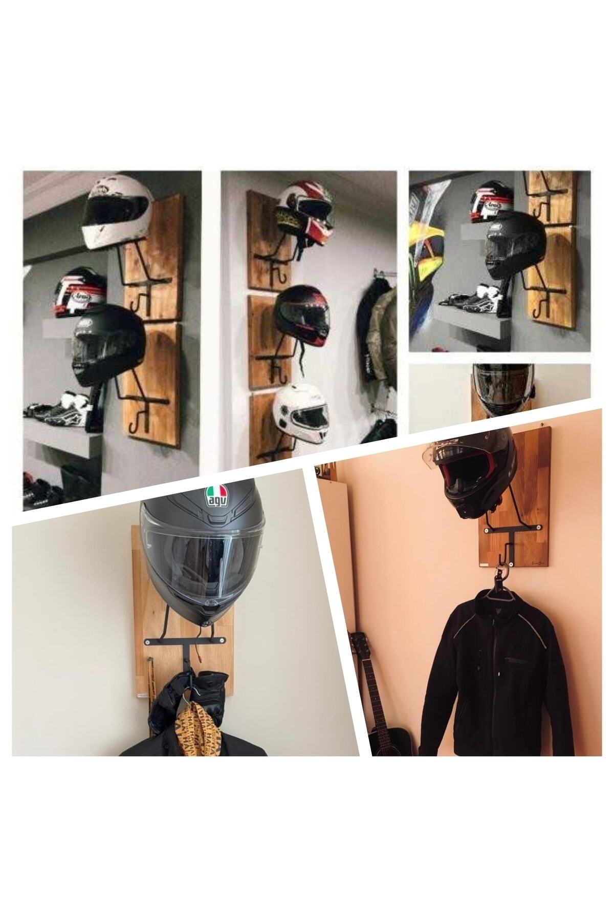 SPECIAL HELMET RACK, MOUNT, EQUIPMENT RACK FOR MOTORCYCLISTS Product Features SPECIAL DESIGN THAT DOES NOT CONTACT THE PAD - Metal part angles and lengths are specially designed and do not come into contact with the protective pad inside the helmet. When you place your helmet correctly, it rests on the visor upper gap and the upper part of the neck, allowing your helmet to lie flat as if it were on your head, without touching the pad. - The metal design of the helmet hangers is independent of the size of your helmet and is suitable for any size. - It is manufactured using 6mm Transmission iron. It does not bend or bend and is extremely durable. - Baked Electrostatic Black Matte Texture Painted. In this way, the metal parts do not scratch or rust and maintain their form for years. - Panels used in wooden models are manufactured from BB - BC quality natural wood solid panels (models with smooth edges are X2-MP, Pine or Spruce) or from single-piece natural wood panels specially cut from imported Russian pine (models with natural appearance are X2-Natura). . - Printed and illustrated models are Glossy 1st Class Canvas prints. The canvas print is placed on a wooden panel and stapled at the back. HELMET RANGER, COAT RANGER and KEYRING HANGER - 2 cobra hooks are delivered with the product to hang your keys. You can mount these hooks at any point you want on the panel. - There is a hook on each metal part to hang your coat on the helmet hanger rails with a clothes hanger. Metal parts are delivered disassembled to prevent damage to the panel during shipping. You can mount it practically with 3 screws. Screws and washers are packaged within the product. EASY INSTALLATION Easy installation with two hangers on the back. It is enough to place a dowel and two screws on the wall. You hang the product like a painting. Since the wall type is unknown, the screws and dowels to mount it on the wall are not included in the package. Product Dimensions SINGLE HANGERS - 30X50cm brand panel size. DOUBLE HANGERS - 30x70cm brand wooden panel size. ECO MODEL - 10x50cm brand wooden panel size. PERSONALIZATION - If personalization is desired on the panel, NAME-SURNAME, LOGO or NAME can be engraved with CNC Laser, free of charge, in the lower left corner. - If orders come through sales channels, Genuine Leather is personalized and added to the package. You can easily stick it to any corner of the panel you want. -Do not forget to send your photos in the appropriate resolution and format for our hangers prepared as canvas prints. IN CASE OF SHIPPING AND DAMAGE - Damage to the product in cargo is a very rare situation that we encounter, but we kindly ask you to contact us. We always replace the damaged part with a new one. - It is very important for you to take time for your damaged cargo and keep a cargo damage report so that our efforts do not go to waste. Even if there is no report, we will definitely be resolving your grievance. NOTE: Helmets and coats are not for sale. The product on sale is HELMET RACK. GGARTDECORATION GGARTHANDMADE ls2, axxis,nexx, jk20, ncr, sway, helmets, bell, freem, jarvis, mt, gopro, gdr, caberg,agv, aerowind, cox, ncr, jk, tex, shark, shoei, airoh, givi, hjc, suomy, arai,premier, revit, tucano, vexo, rsv, harley, venom, motul, oem, jiekai, monero,bering, kappa, salomon, nero, momo, macna, knmaster, schuberth, shiro, iron, akrapovic, rectus, gojo, mitas, daniese, divortex, vizor, putoline, ktm, yuma, buffer, ariete, shad, schulzz, bitwell, universal, maxxis, leyaton, tiens, bajaj, gogo, andes