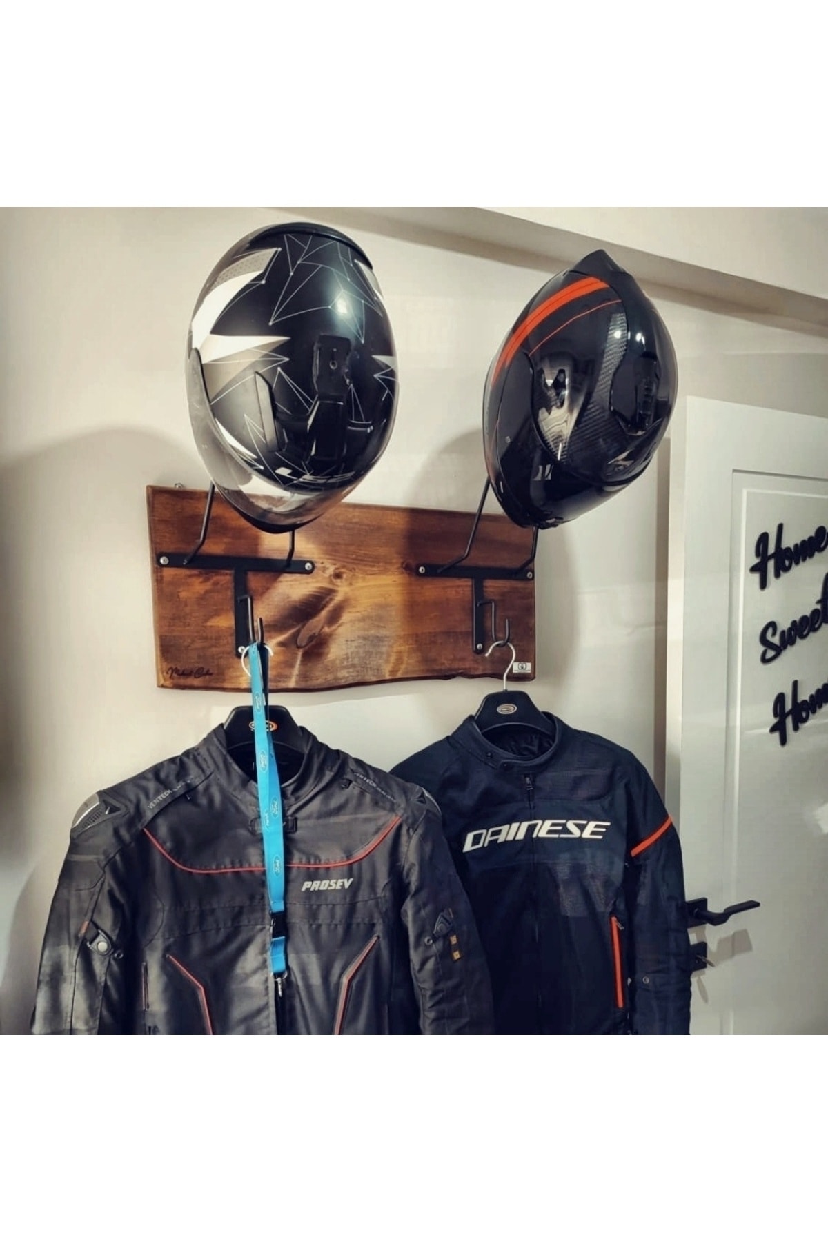 SPECIAL HELMET RACK, MOUNT, EQUIPMENT RACK FOR MOTORCYCLISTS Product Features SPECIAL DESIGN THAT DOES NOT CONTACT THE PAD - Metal part angles and lengths are specially designed and do not come into contact with the protective pad inside the helmet. When you place your helmet correctly, it rests on the visor upper gap and the upper part of the neck, allowing your helmet to lie flat as if it were on your head, without touching the pad. - The metal design of the helmet hangers is independent of the size of your helmet and is suitable for any size. - It is manufactured using 6mm Transmission iron. It does not bend or bend and is extremely durable. - Baked Electrostatic Black Matte Texture Painted. In this way, the metal parts do not scratch or rust and maintain their form for years. - Panels used in wooden models are manufactured from BB - BC quality natural wood solid panels (models with smooth edges are X2-MP, Pine or Spruce) or from single-piece natural wood panels specially cut from imported Russian pine (models with natural appearance are X2-Natura). . - Printed and illustrated models are Glossy 1st Class Canvas prints. The canvas print is placed on a wooden panel and stapled at the back. HELMET RANGER, COAT RANGER and KEYRING HANGER - 2 cobra hooks are delivered with the product to hang your keys. You can mount these hooks at any point you want on the panel. - There is a hook on each metal part to hang your coat on the helmet hanger rails with a clothes hanger. Metal parts are delivered disassembled to prevent damage to the panel during shipping. You can mount it practically with 3 screws. Screws and washers are packaged within the product. EASY INSTALLATION Easy installation with two hangers on the back. It is enough to place a dowel and two screws on the wall. You hang the product like a painting. Since the wall type is unknown, the screws and dowels to mount it on the wall are not included in the package. Product Dimensions SINGLE HANGERS - 30X50cm brand panel size. DOUBLE HANGERS - 30x70cm brand wooden panel size. ECO MODEL - 10x50cm brand wooden panel size. PERSONALIZATION - If personalization is desired on the panel, NAME-SURNAME, LOGO or NAME can be engraved with CNC Laser, free of charge, in the lower left corner. - If orders come through sales channels, Genuine Leather is personalized and added to the package. You can easily stick it to any corner of the panel you want. -Do not forget to send your photos in the appropriate resolution and format for our hangers prepared as canvas prints. IN CASE OF SHIPPING AND DAMAGE - Damage to the product in cargo is a very rare situation that we encounter, but we kindly ask you to contact us. We always replace the damaged part with a new one. - It is very important for you to take time for your damaged cargo and keep a cargo damage report so that our efforts do not go to waste. Even if there is no report, we will definitely be resolving your grievance. NOTE: Helmets and coats are not for sale. The product on sale is HELMET RACK. GGARTDECORATION GGARTHANDMADE ls2, axxis,nexx, jk20, ncr, sway, helmets, bell, freem, jarvis, mt, gopro, gdr, caberg,agv, aerowind, cox, ncr, jk, tex, shark, shoei, airoh, givi, hjc, suomy, arai,premier, revit, tucano, vexo, rsv, harley, venom, motul, oem, jiekai, monero,bering, kappa, salomon, nero, momo, macna, knmaster, schuberth, shiro, iron, akrapovic, rectus, gojo, mitas, daniese, divortex, vizor, putoline, ktm, yuma, buffer, ariete, shad, schulzz, bitwell, universal, maxxis, leyaton, tiens, bajaj, gogo, andes