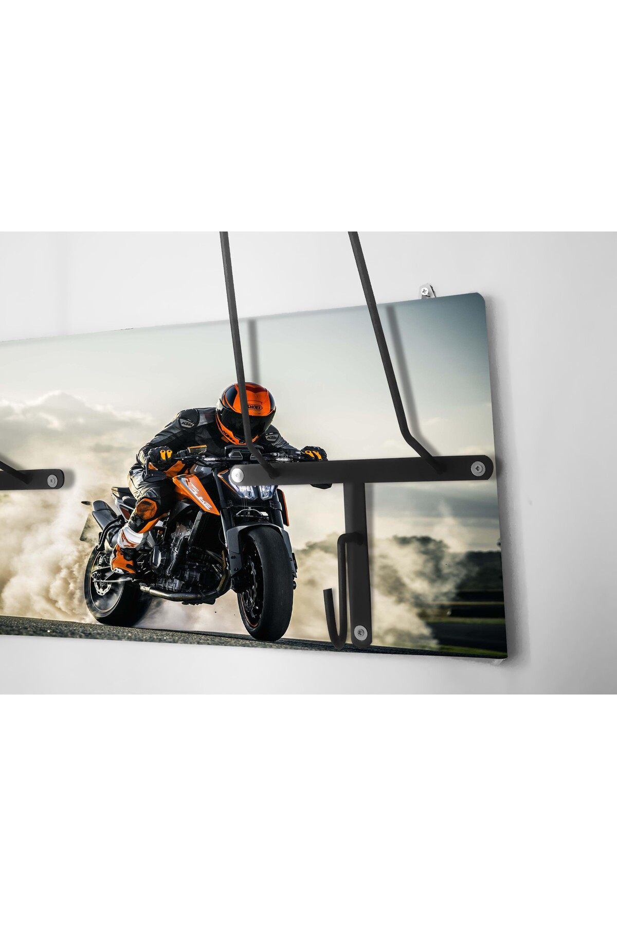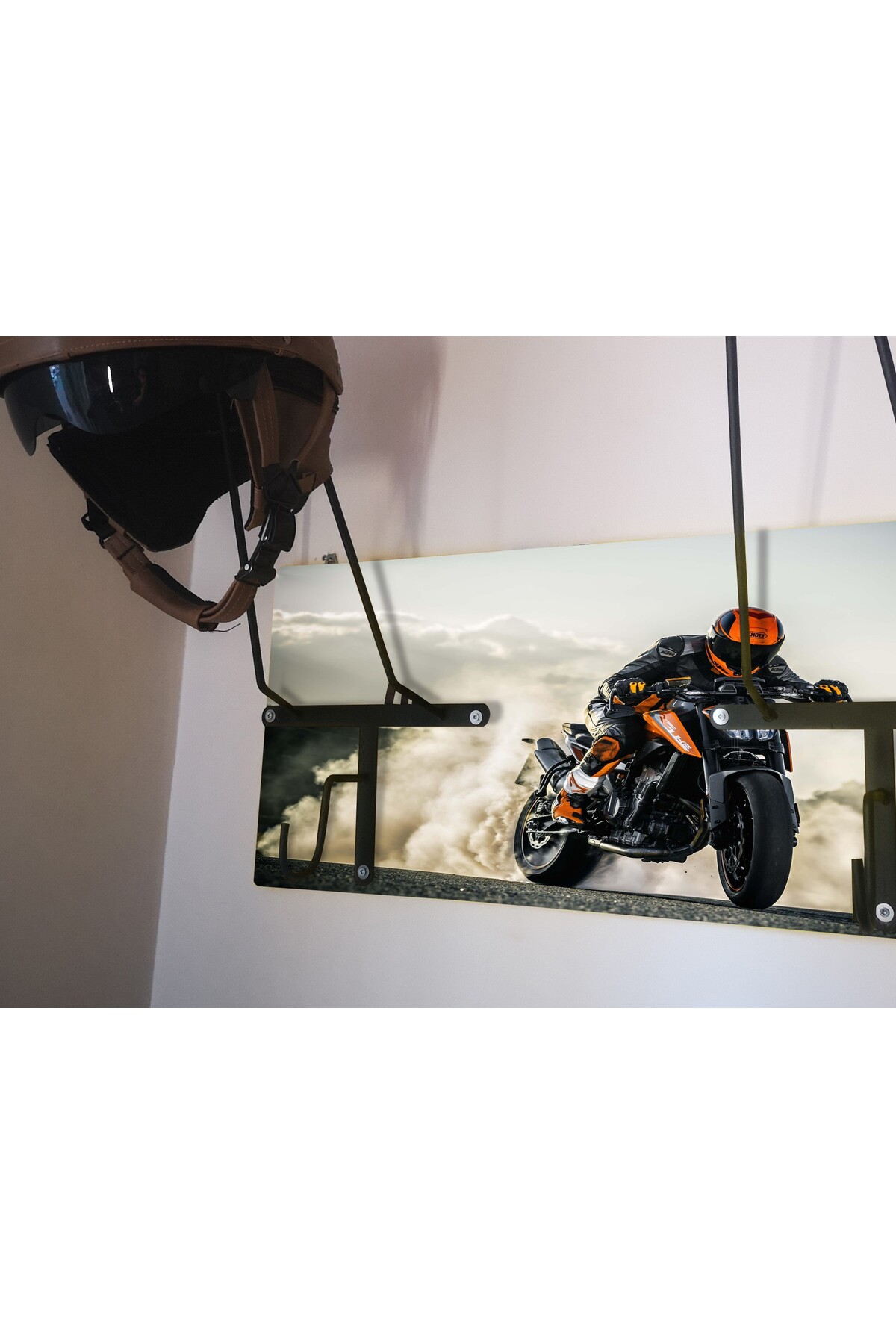 SPECIAL HELMET RACK, MOUNT, EQUIPMENT RACK FOR MOTORCYCLISTS Product Features SPECIAL DESIGN THAT DOES NOT CONTACT THE PAD - Metal part angles and lengths are specially designed and do not come into contact with the protective pad inside the helmet. When you place your helmet correctly, it rests on the visor upper gap and the upper part of the neck, allowing your helmet to lie flat as if it were on your head, without touching the pad. - The metal design of the helmet hangers is independent of the size of your helmet and is suitable for any size. - It is manufactured using 6mm Transmission iron. It does not bend or bend and is extremely durable. - Baked Electrostatic Black Matte Texture Painted. In this way, the metal parts do not scratch or rust and maintain their form for years. - Panels used in wooden models are manufactured from BB - BC quality natural wood solid panels (models with smooth edges are X2-MP, Pine or Spruce) or from single-piece natural wood panels specially cut from imported Russian pine (models with natural appearance are X2-Natura). . - Printed and illustrated models are Glossy 1st Class Canvas prints. The canvas print is placed on a wooden panel and stapled at the back. HELMET RANGER, COAT RANGER and KEYRING HANGER - 2 cobra hooks are delivered with the product to hang your keys. You can mount these hooks at any point you want on the panel. - There is a hook on each metal part to hang your coat on the helmet hanger rails with a clothes hanger. Metal parts are delivered disassembled to prevent damage to the panel during shipping. You can mount it practically with 3 screws. Screws and washers are packaged within the product. EASY INSTALLATION Easy installation with two hangers on the back. It is enough to place a dowel and two screws on the wall. You hang the product like a painting. Since the wall type is unknown, the screws and dowels to mount it on the wall are not included in the package. Product Dimensions SINGLE HANGERS - 30X50cm brand panel size. DOUBLE HANGERS - 30x70cm brand wooden panel size. ECO MODEL - 10x50cm brand wooden panel size. PERSONALIZATION - If personalization is desired on the panel, NAME-SURNAME, LOGO or NAME can be engraved with CNC Laser, free of charge, in the lower left corner. - If orders come through sales channels, Genuine Leather is personalized and added to the package. You can easily stick it to any corner of the panel you want. -Do not forget to send your photos in the appropriate resolution and format for our hangers prepared as canvas prints. IN CASE OF SHIPPING AND DAMAGE - Damage to the product in cargo is a very rare situation that we encounter, but we kindly ask you to contact us. We always replace the damaged part with a new one. - It is very important for you to take time for your damaged cargo and keep a cargo damage report so that our efforts do not go to waste. Even if there is no report, we will definitely be resolving your grievance. NOTE: Helmets and coats are not for sale. The product on sale is HELMET RACK. GGARTDECORATION GGARTHANDMADE ls2, axxis,nexx, jk20, ncr, sway, helmets, bell, freem, jarvis, mt, gopro, gdr, caberg,agv, aerowind, cox, ncr, jk, tex, shark, shoei, airoh, givi, hjc, suomy, arai,premier, revit, tucano, vexo, rsv, harley, venom, motul, oem, jiekai, monero,bering, kappa, salomon, nero, momo, macna, knmaster, schuberth, shiro, iron, akrapovic, rectus, gojo, mitas, daniese, divortex, vizor, putoline, ktm, yuma, buffer, ariete, shad, schulzz, bitwell, universal, maxxis, leyaton, tiens, bajaj, gogo, andes