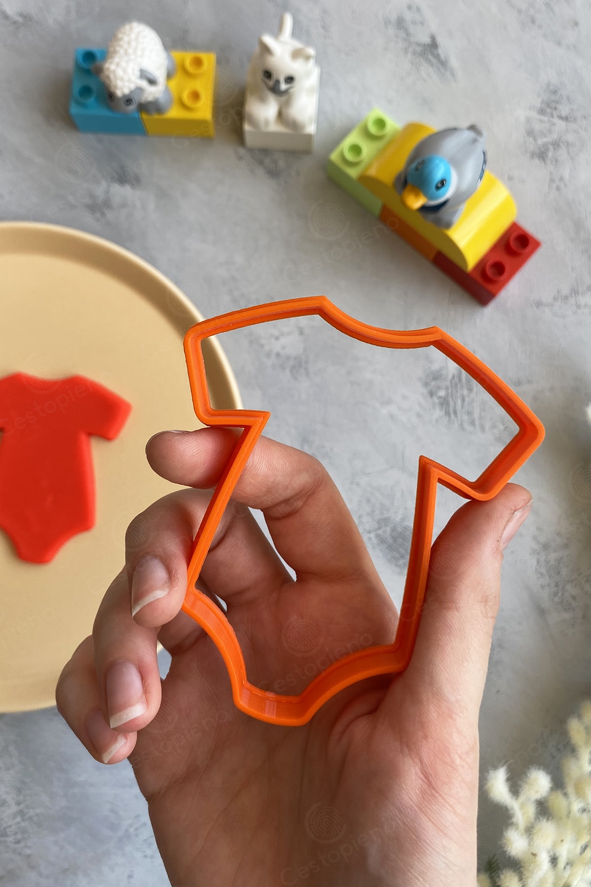 Orange Color, 8x9 cm in size. It should not be exposed to temperatures above 50 degrees. It should not be washed in the machine. Wash by hand. It is produced with Bioplastic raw material, which can be dissolved in nature in a short time. Suitable for use with Cookie Dough, Sugar Dough, Play Dough and Ceramic Dough.