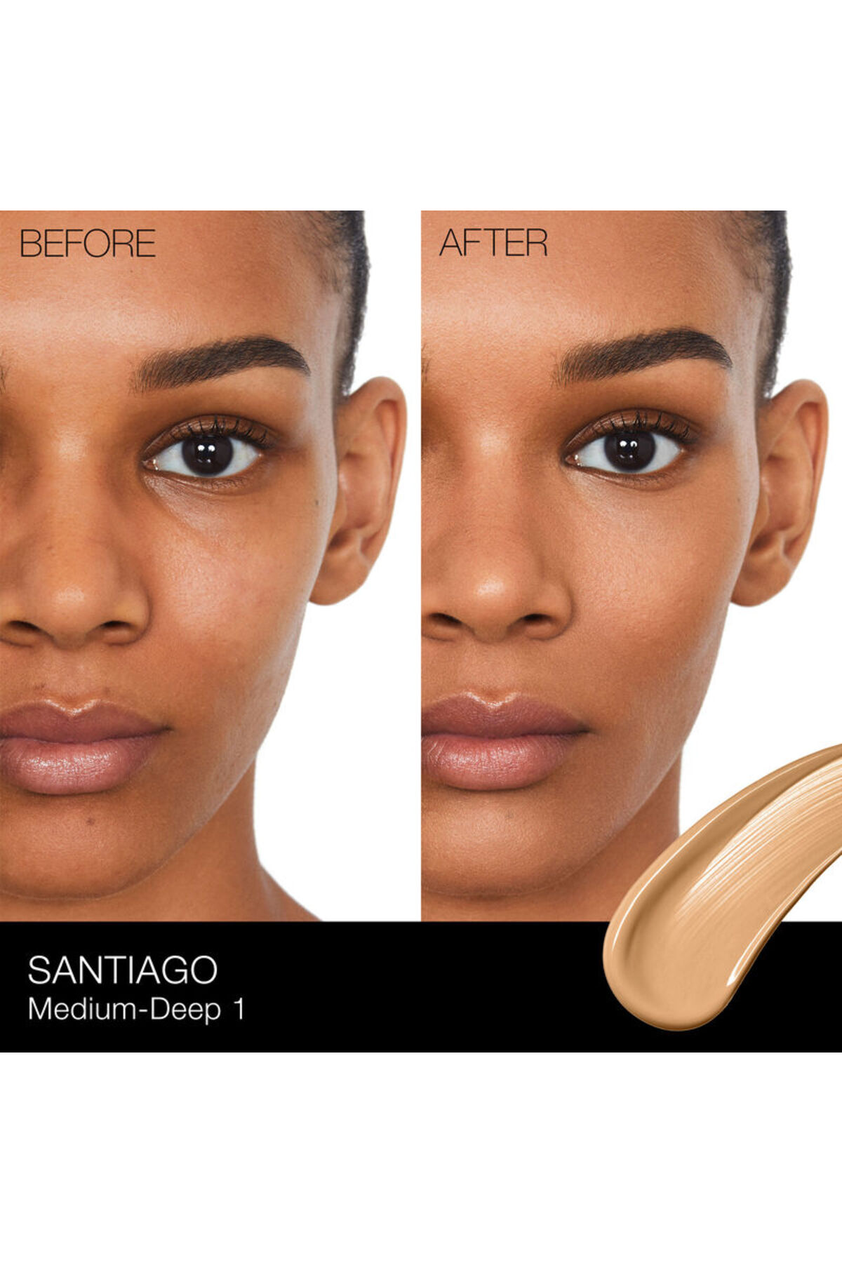 Discover Nars' iconic tinted moisturizer, available in 16 color options suitable for all skin types and tones. It is everything to everyone; It's packed with buildable, oil-free coverage, SPF 30, and skincare ingredients to hydrate, smooth, brighten, and protect. Vitamin C helps protect against environmental aggressors and even out skin tone for brighter-looking skin in just four weeks. French Polynesian cola helps moisturize, soften and improve the appearance of skin for softer, smoother skin. Allow the foundation to dry on the skin to verify your perfect color match. Please note that shades may vary slightly between formulas depending on coverage and finish.