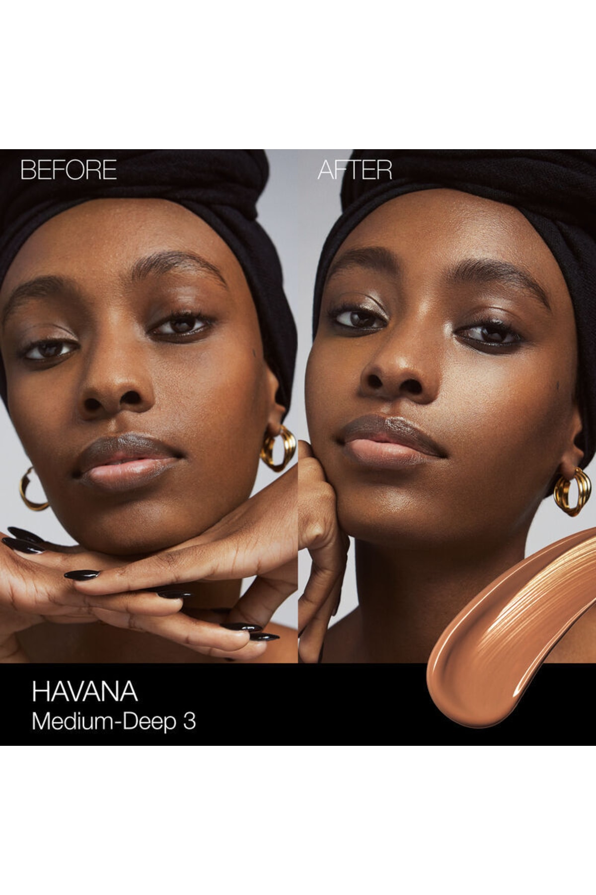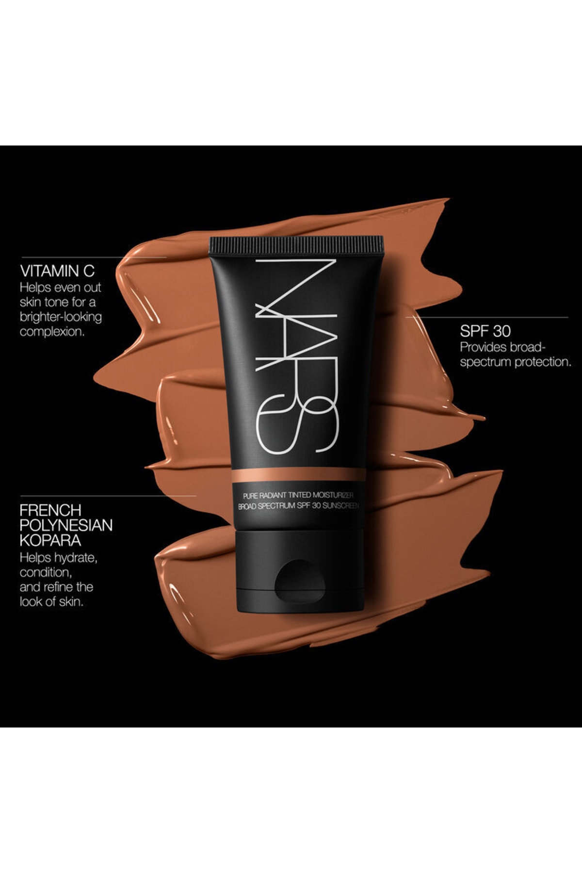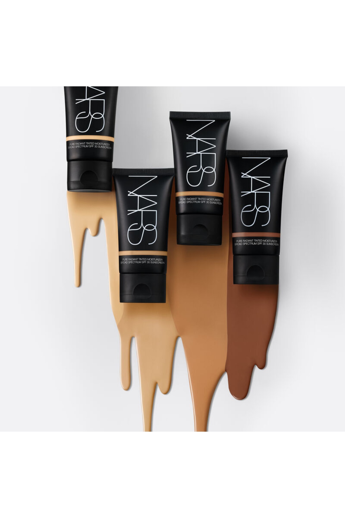 Discover NARS' iconic tinted moisturizer, available in 16 shades for all skin types and tones. It's everything to everyone; Buildable, oil-free coverage is packed with SPF 30 and skincare ingredients to hydrate, smooth, brighten and protect. Vitamin C helps protect against environmental aggressors and even skin tone for brighter-looking skin in just four weeks. French Polynesian Copara helps moisturize, condition and improve the appearance of the skin for softer and smoother skin. To confirm your perfect color match, let the foundation dry on the skin. Please note that shades may vary slightly between formulas depending on coverage and finish. 90% agree that the product gives a healthy glow.* ; 90% agree that the product leaves the skin feeling soft.* ; 90% feel their skin feels relaxed after applying the product.* ; 87% agree that the product feels light on the skin.* ; 87% agree that the product provides more even-toned skin.* ; 84% agree that their skin looks brighter and more radiant.* ; 84% agree that dark spots are less visible on bare skin.* ; *Based on an independent US consumer study of 31 participants after 4 weeks. DETAILS Sheer, buildable coverage; Shiny, natural finish; Broad Spectrum SPF 30 ; Does not cause acne; does not clog pores; Dispense a small amount of product and warm with fingertips. ; Press and blend into skin. Build to desired coverage. ;