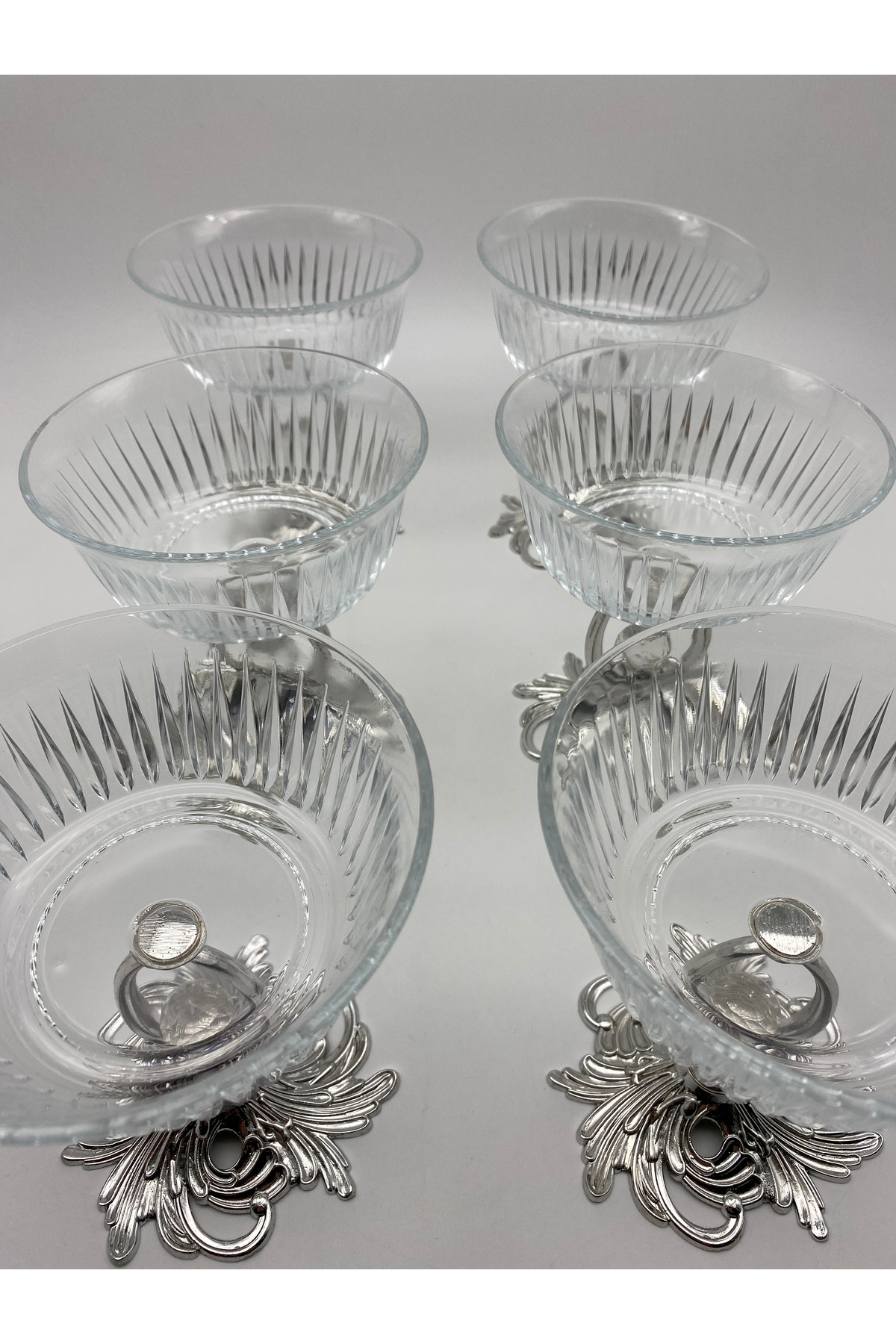 Set of 6 Silver Footed Paşabahçe Freesia Glass Bowls, Ice Cream, Snack, Jam and Presentation Bowls