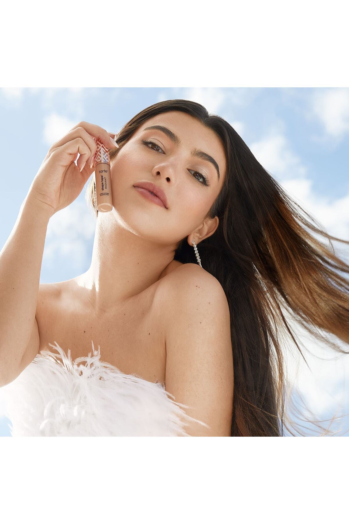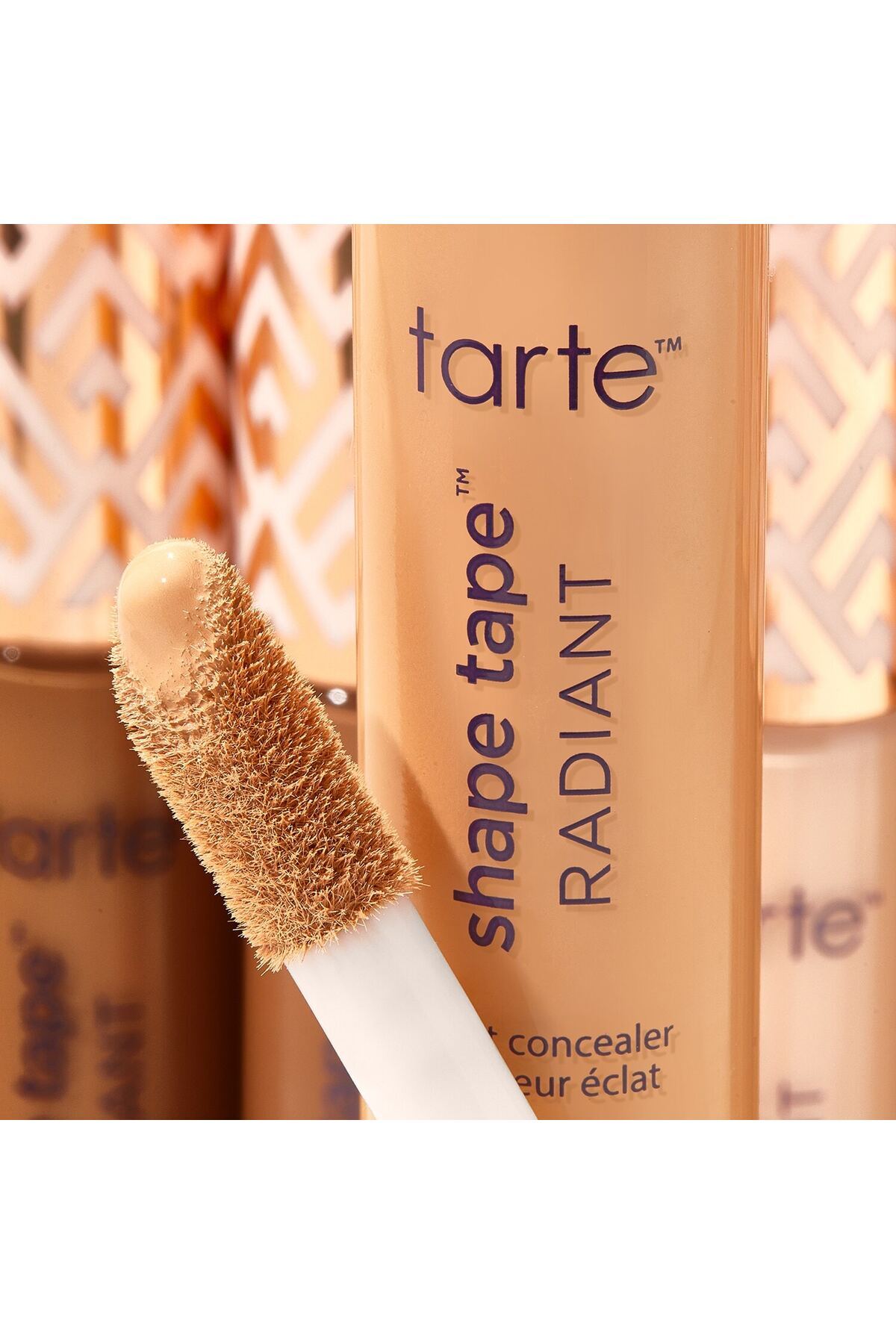 Medium coverage with a shimmery finish. tarte's Radiant Shape tape™ concealer offers medium, light coverage for a "bare skin" effect without the plaster effect and without hiding freckles. Sheer, medium coverage with a shiny finish for silky smooth skin. The photoluminescent complex converts UV light into blue light to reduce dark circles and give the skin a radiant effect. The triple blend of hyaluronic acids moisturizes the skin for 24 hours.