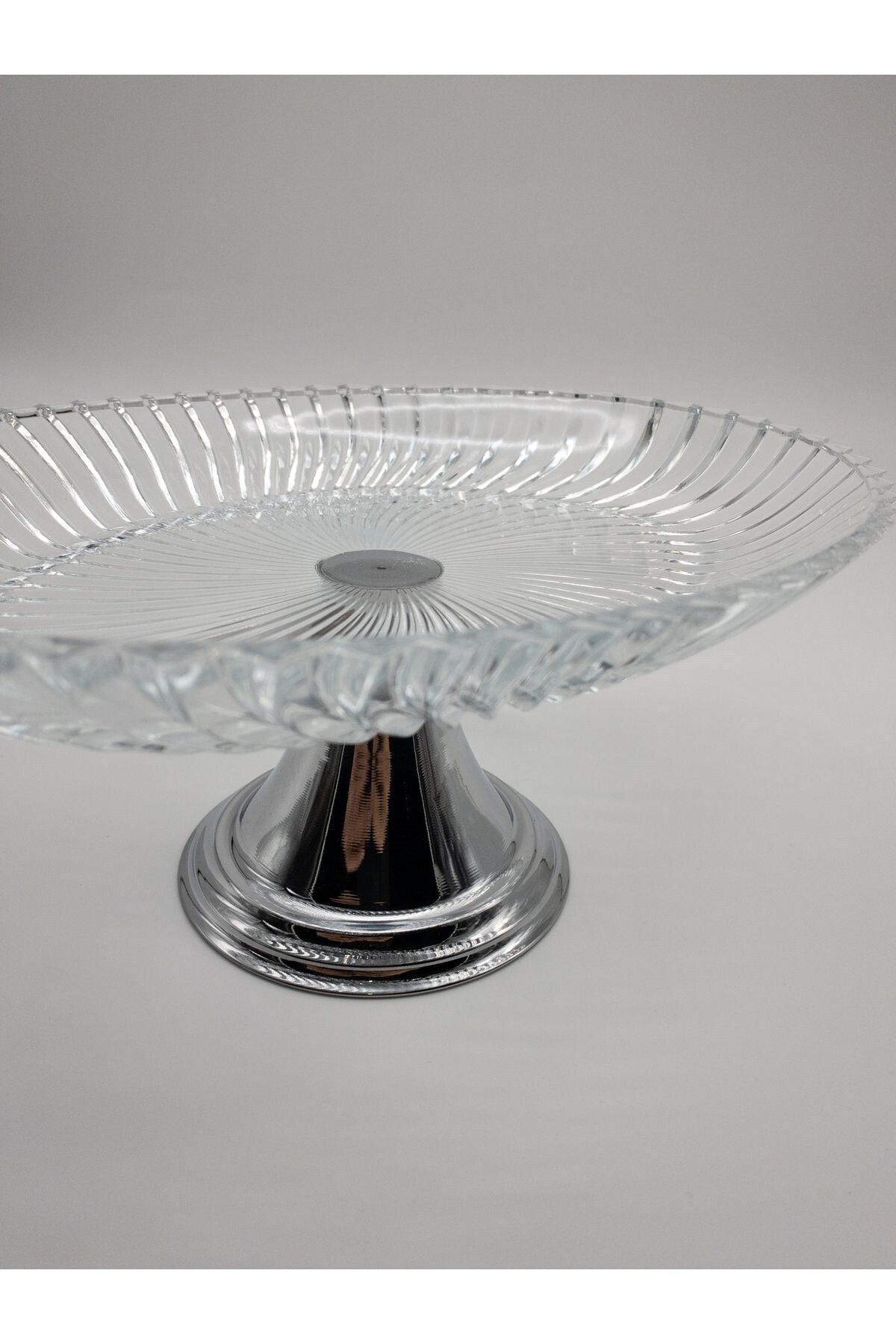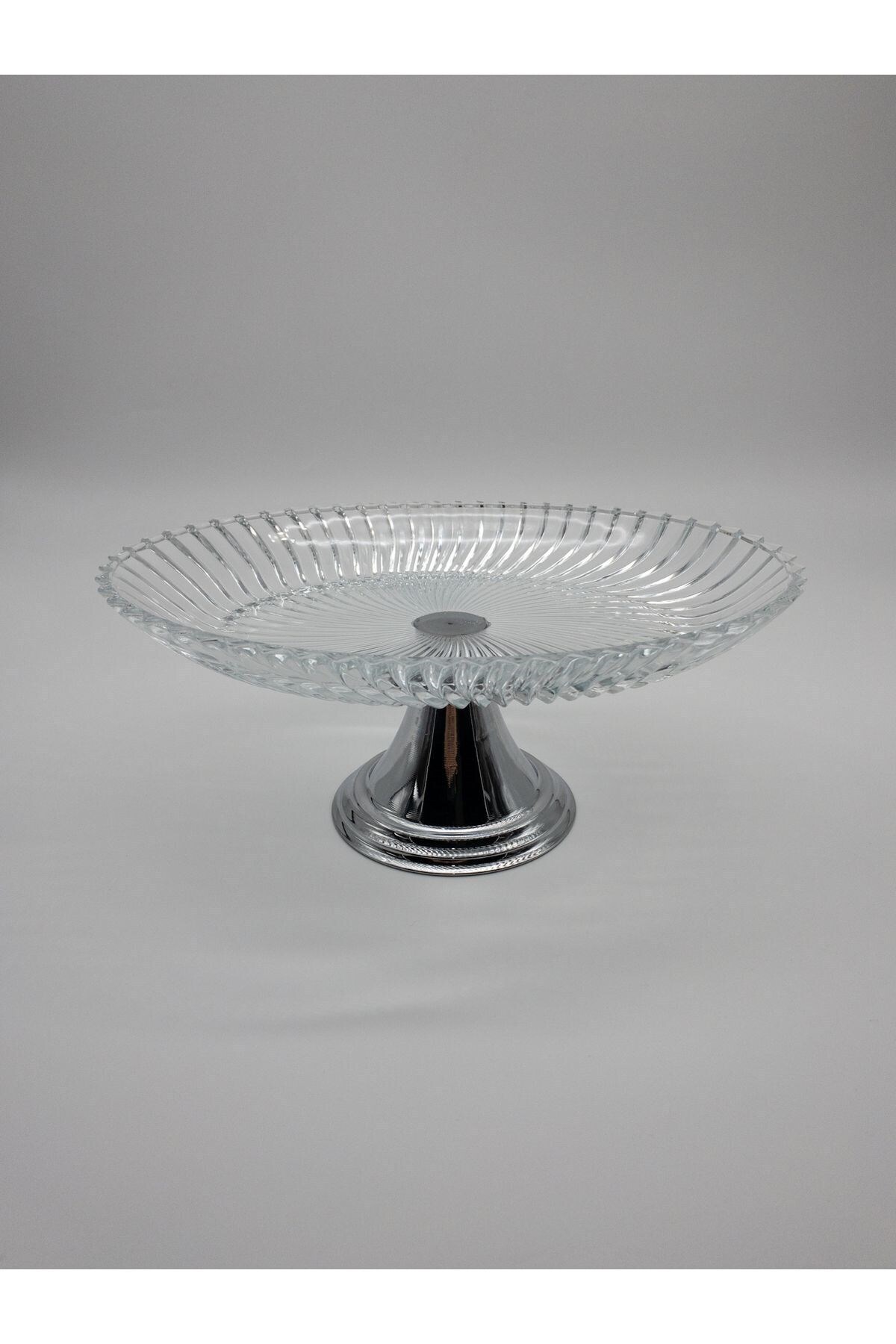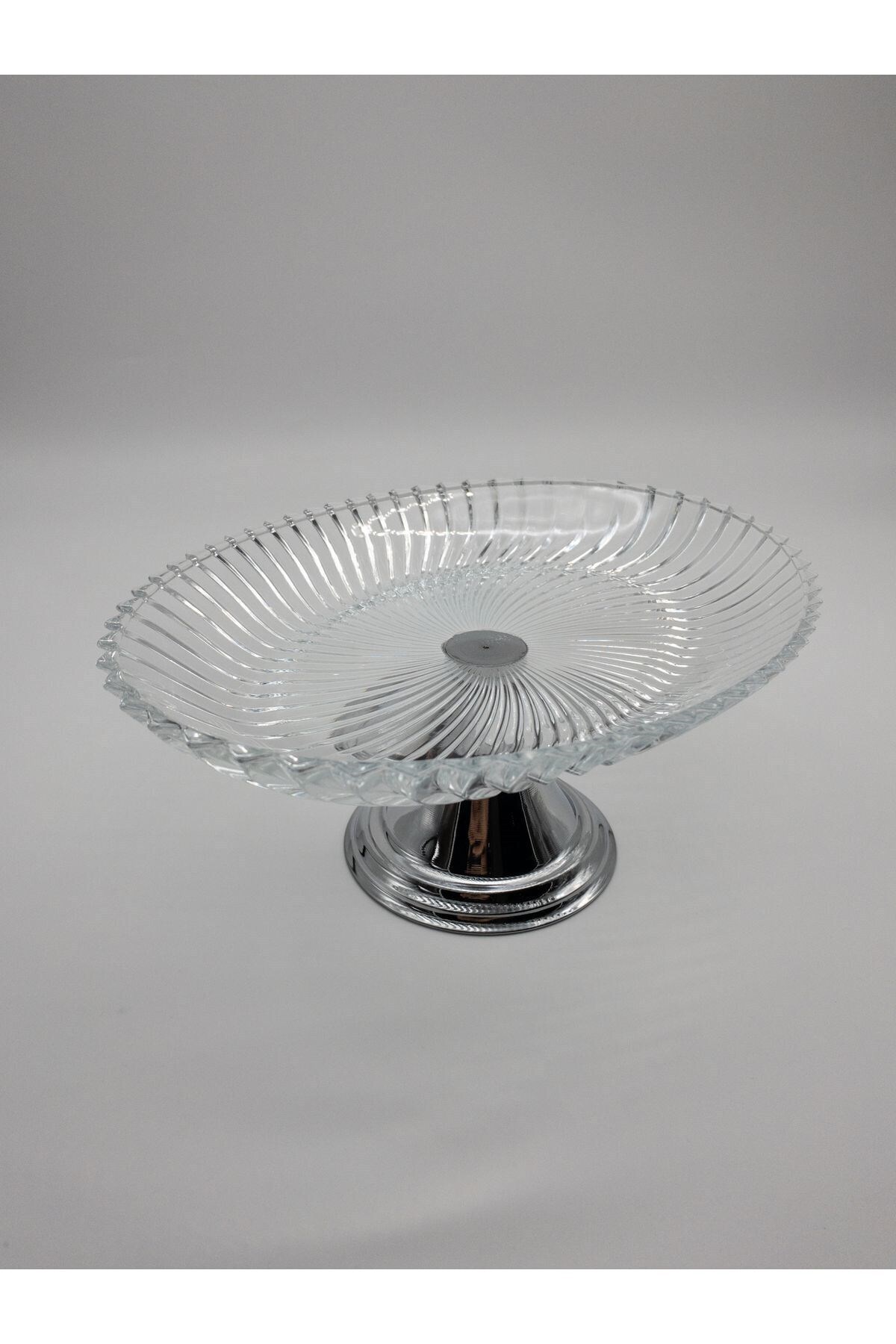 Silver Footed Ellipse Glass Serving Bowl, Wrap, Stuffing, Salad, Fruit and Cake Presentation Stand, Dowry Holder